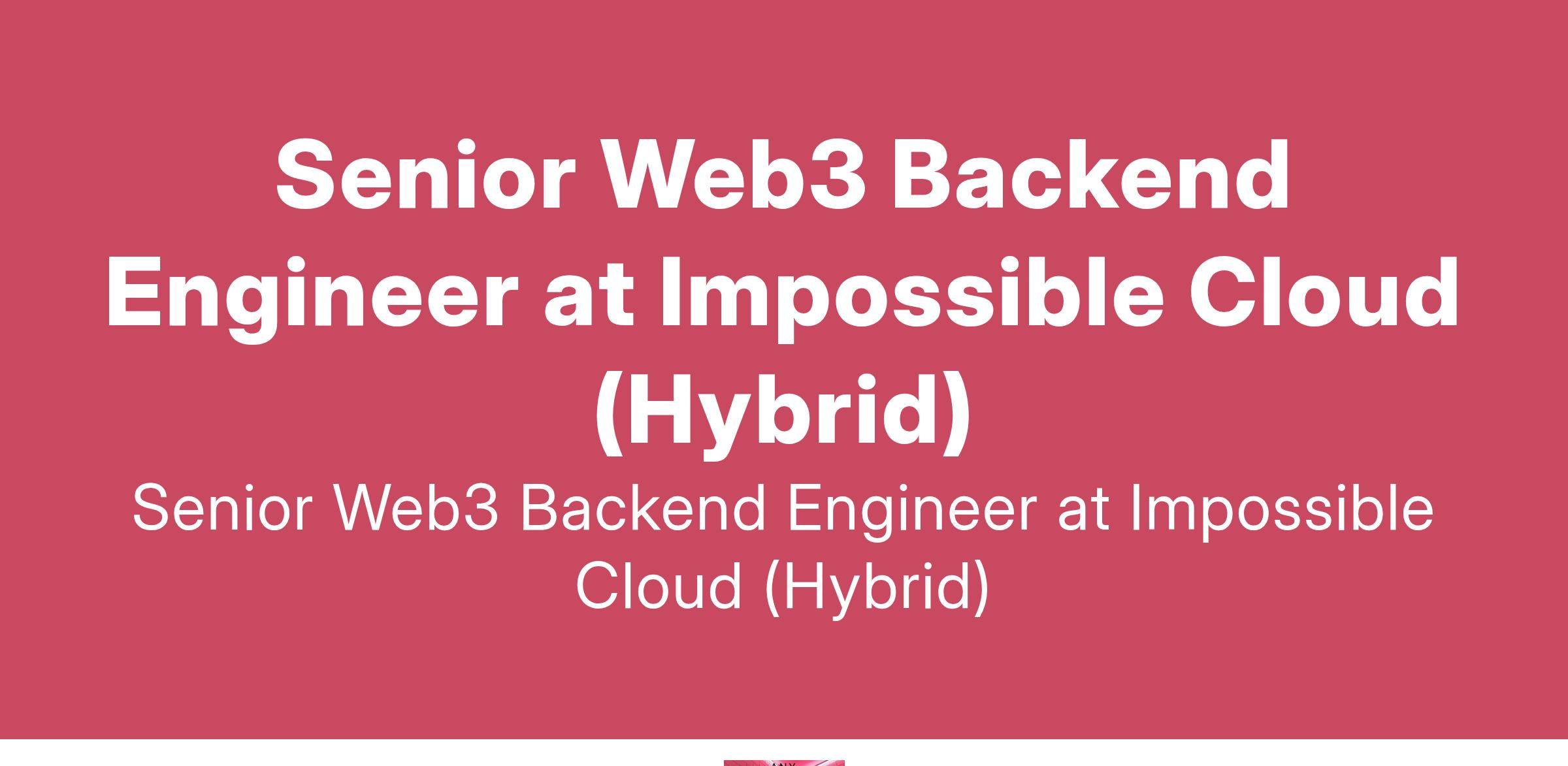Senior Web3 Backend Engineer at Impossible Cloud (Hybrid)