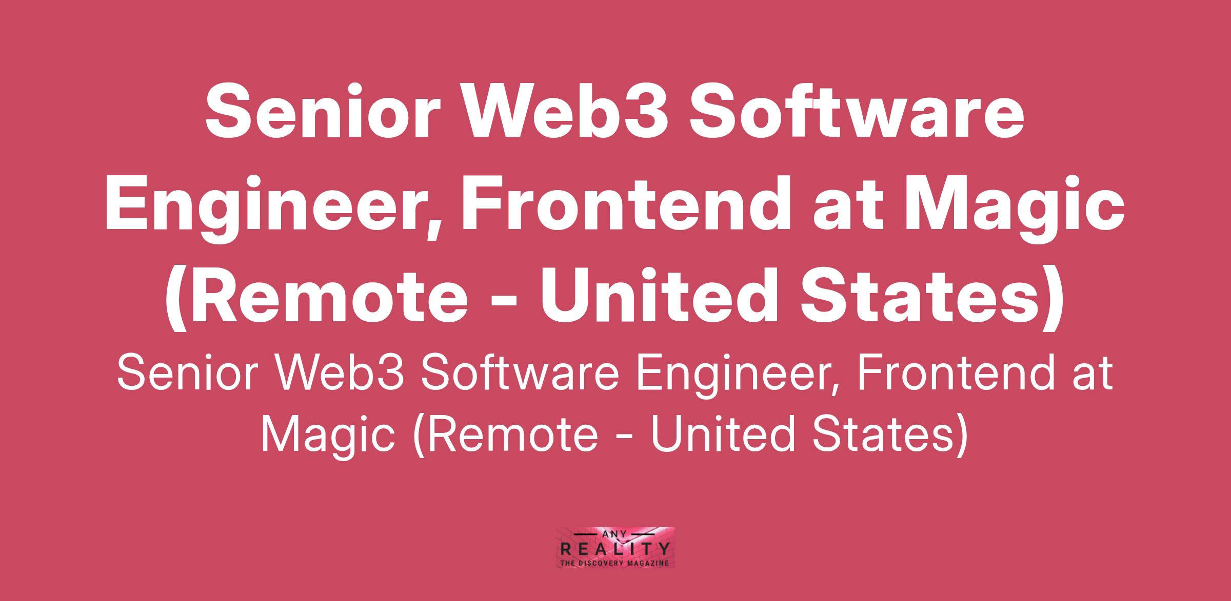 Senior Web3 Software Engineer, Frontend at Magic (Remote - United States)