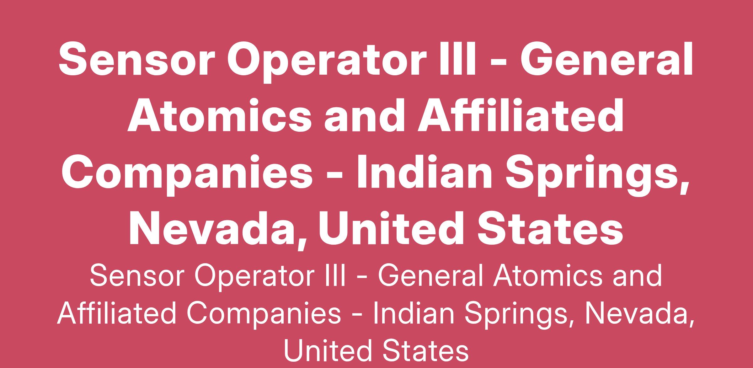 Job DescriptionGeneral Atomics Systems Integration, LLC (GA-SI), an affiliate of General Atomics, is a provider of military and commercial engineering services. GA-SI is a leading-edge expert in systems integration technologies, reliability improvements, and controls system design.