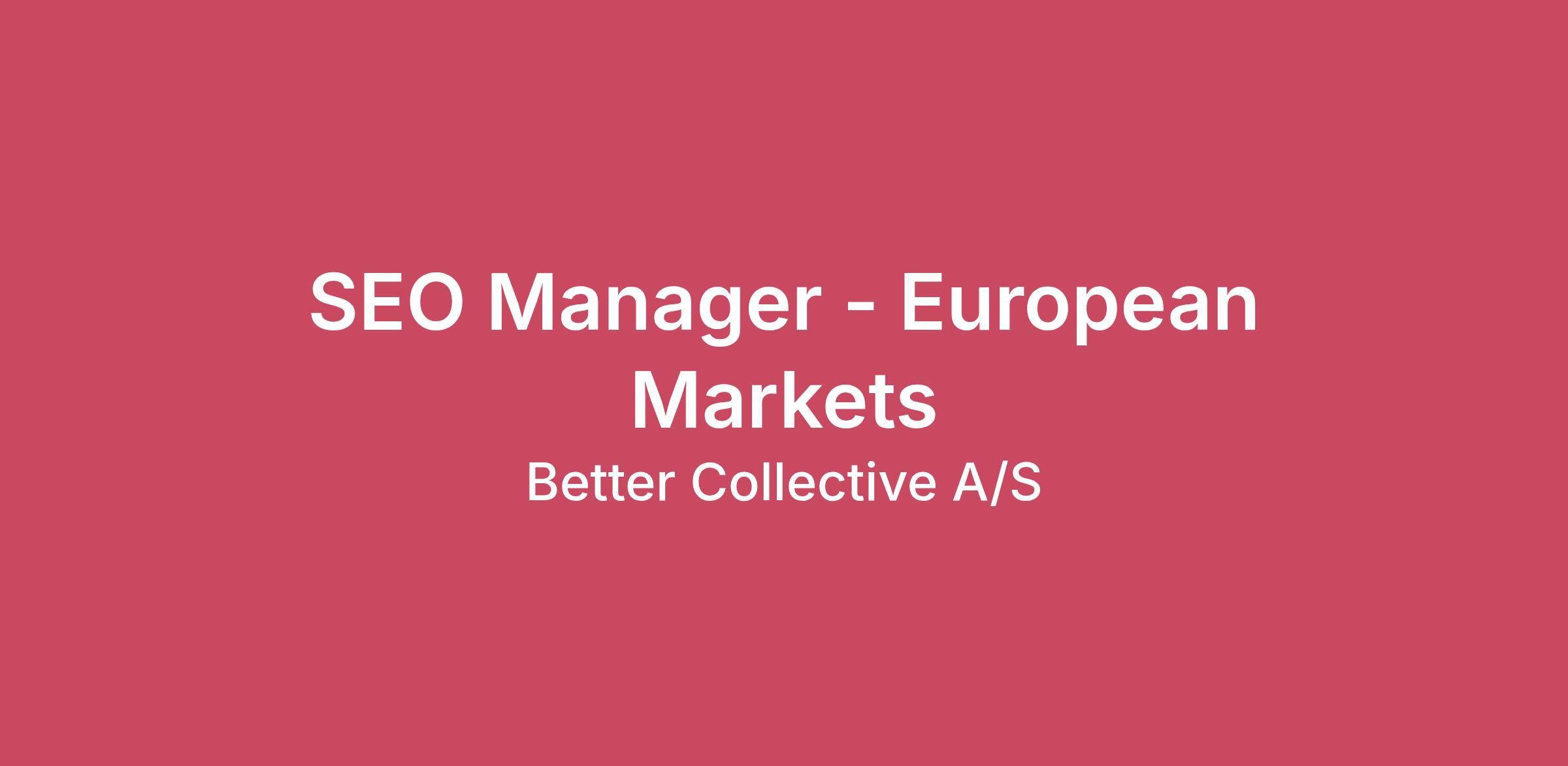 Better Collective is looking for an SEO Manager to join our team in Paris. In this strategic role, you will be leading SEO strategy and organic growth for our flagship websites in European markets, within the demanding iGaming sector. If you are a technical and strategic expert ready to take on a major international challenge, this role is for you.
