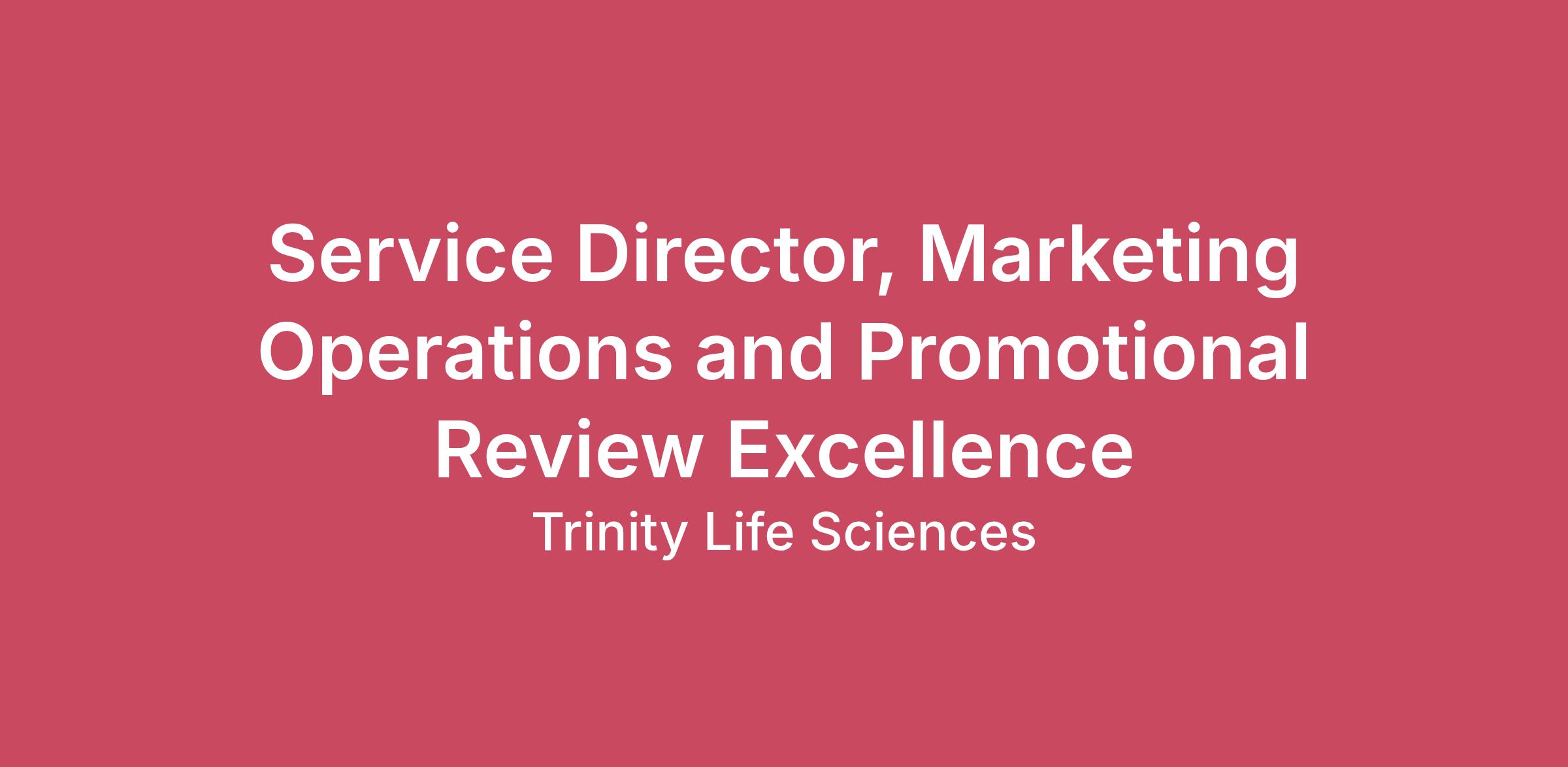 We're committed to bringing passion and customer focus to the business.Service Director, Management Advisor, Marketing Operations and Promotional Review ExcellencePosition Summary The Service Director for the Marketing Operations and Promotional Review Solutions is a accountable for delivering excellence and operational execution for contracted benchmarking and advisory services. The role ensures end-to-end high‑quality execution, coordination, issue resolution and delivery, while expanding the breadth and depth of value TGaS solutions.This role serves as the operational backbone of Marketing Operations and Promotional Review Excellence service delivery - working closely with Solution Management Advisors, Analytics, and Operations teams to ensure projects are executed with rigor, consistency, and timeliness. Success is defined by client satisfaction, retention, delivery excellence, and operational efficiency.Essential FunctionsThe position will have distinct responsibilities:Advisory Services & Client Support (≈30%)Responsible for the delivery experience for clients, serving as the primary escalation point to ensure services are delivered in line with the contracted scope and expectations.Execute contracted advisory services including VHows, advisory discussions, peer connects, urgent support requests, and member meetings leveraging TGaS databases and benchmarking assetsCoordinate logistics and delivery for client summits, conferences, and semi‑annual or biannual meetings in partnership with Solution leadershipImprove and implement enhancements to delivery and operational processes to increase efficiency, quality, and scalability.Coordinate continuous review of client satisfaction and retention value of engagement and servicesClient Benchmark Engagements & Projects (≈30%)Accountable for the credibility and quality of client deliverables (e.g., benchmarks, business plans, capability assessments, road maps) through data collection, survey deployment, document review, and analysis support. Gather and analyze client documentation and input quantitative and qualitative data into TGaS databases for analysis and peer comparison. Work closely with Analytics and Solution Advisors to ensure quality checks are completed and that deliverables accurately reflect client capabilities relative to peer sets and TGaS best‑practice continuums.Coordinate reconciliation of post‑readout updates and adjustments into databases and standard tools. Project Management & Operational Coordination (≈30%)Maintain engagement timelines, track deliverables, and coordinate resources across multiple concurrent client projects.Monitor data collection and tracking systems for ongoing benchmark initiatives and deep research efforts.Track proposal, SOW, and engagement status in partnership with Solution leadership.Identify opportunities for process improvement and support implementation of enhancements to standard tools, templates, and workflows.Resolve escalations and anticipates and mitigates risksUltimately accountable for meeting client expectations and deliveryProduct & Solution Enablement (10%)Capture unmet market needs and insights observed through client engagements and route them to Solution Management Advisors for evaluation. Own the identification and recommendation of delivery-driven solution development initiatives following client engagements, including updates to templates, databases, and standard deliverables. Converts insights into solution enhancements to drive long-term scalability and valuePosition RequirementsBachelor’s degree required. Advanced degree preferred.8-10+ years’ experience in providing related services and/or products to the pharmaceutical industry in pharmaceutical commercial operations, account management, analytics, data management, marketing operations, consulting/advisory services, or related roles with increasing leadership scopeDemonstrated track record of strong client relationship management in a Commercial Operations capacityDemonstrated track record of strategic thinking and service design (management consulting, information provider, applications development, account service, or comparable model)Ability to build cross-functional relationships, while having strong integrity, judgment and escalation skillsProject Management experience in overseeing or contributing to complex, multi-discipline projects.Advanced Microsoft Office skills (PowerPoint, Excel, Word), comfort with documentation systems (SharePoint/OneDrive) and modern productivity/AI tools.Familiarity with Salesforce, Tableau, or similar BI platforms.Documented track record of developing and managing effective relationships with ClientsExcellent verbal, writing, and presentation communication skills with the ability to engage with senior level stakeholdersThis position may require local, regional and/or national travel up to approximately 10% of the timeAbout UsTrinity Life Sciences is a trusted strategic commercialization partner, providing evidence-based solutions for the life sciences. With 25 years of experience, Trinity is committed to revolutionizing the commercial model by providing exceptional levels of service, powerful tools and data-driven insights. Trinity’s range of products and solutions includes industry-leading benchmarking solutions, powered by TGaS Advisors. To learn more about how Trinity is elevating life sciences and driving evidence to action, visit trinitylifesciences.com.Trinity’s salary bands account for a wide range of factors that are considered in making compensation decisions including but not limited to skill sets and market demand for skills; level of experience and training; specific qualifications, performance, time in role/company, geographic location, and other business and organizational needs. A reasonable estimate of the current range starting at $145,000. In addition to your base salary, you will also be eligible for an annual discretionary performance bonus.Trinit