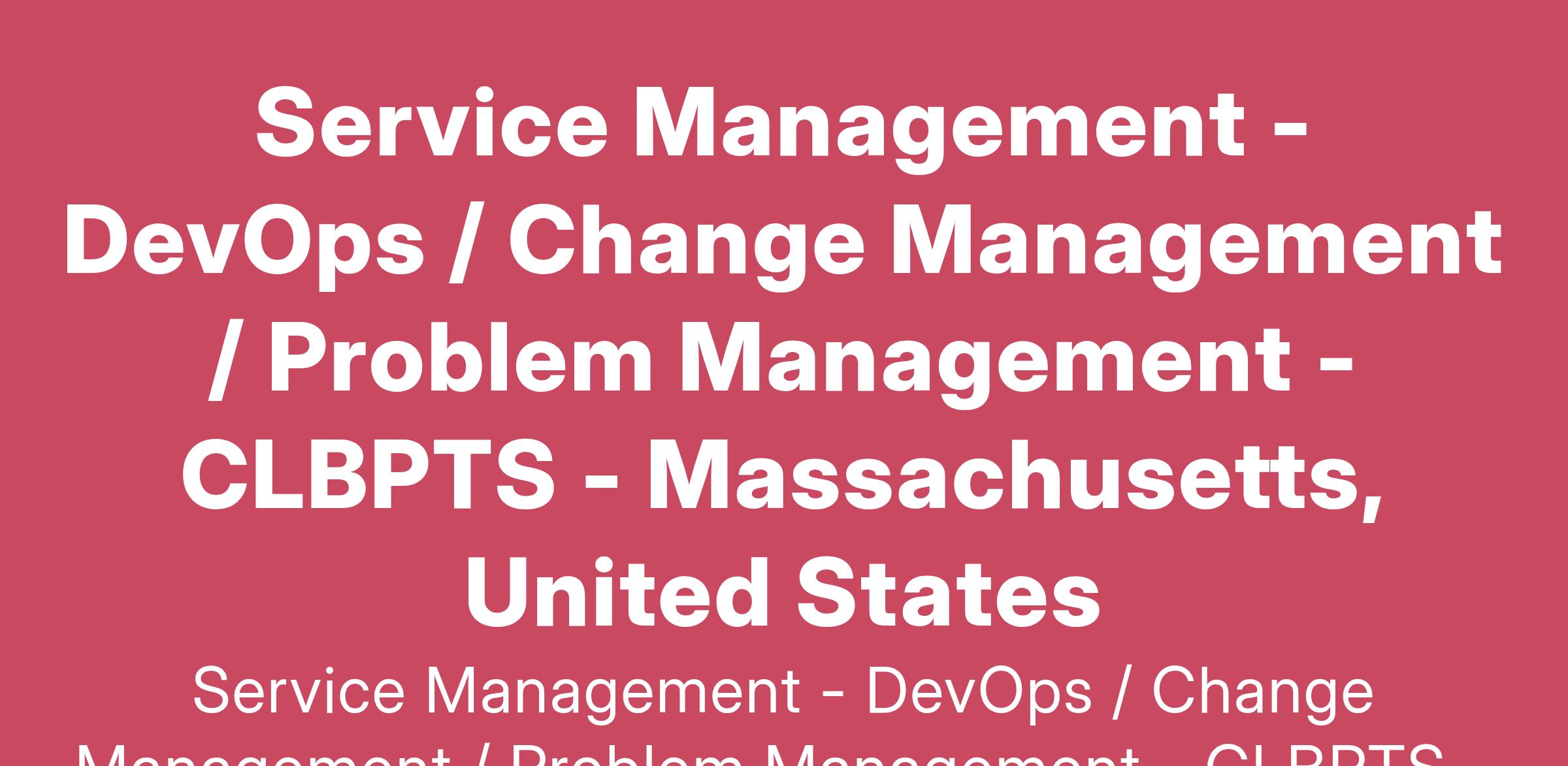 - Advise infrastructure and business technical teams and existing Service Delivery teams on best practices in the areas of Problem and Change management (with a specific focus on managing these processes in a Cloud and DevOps environment)