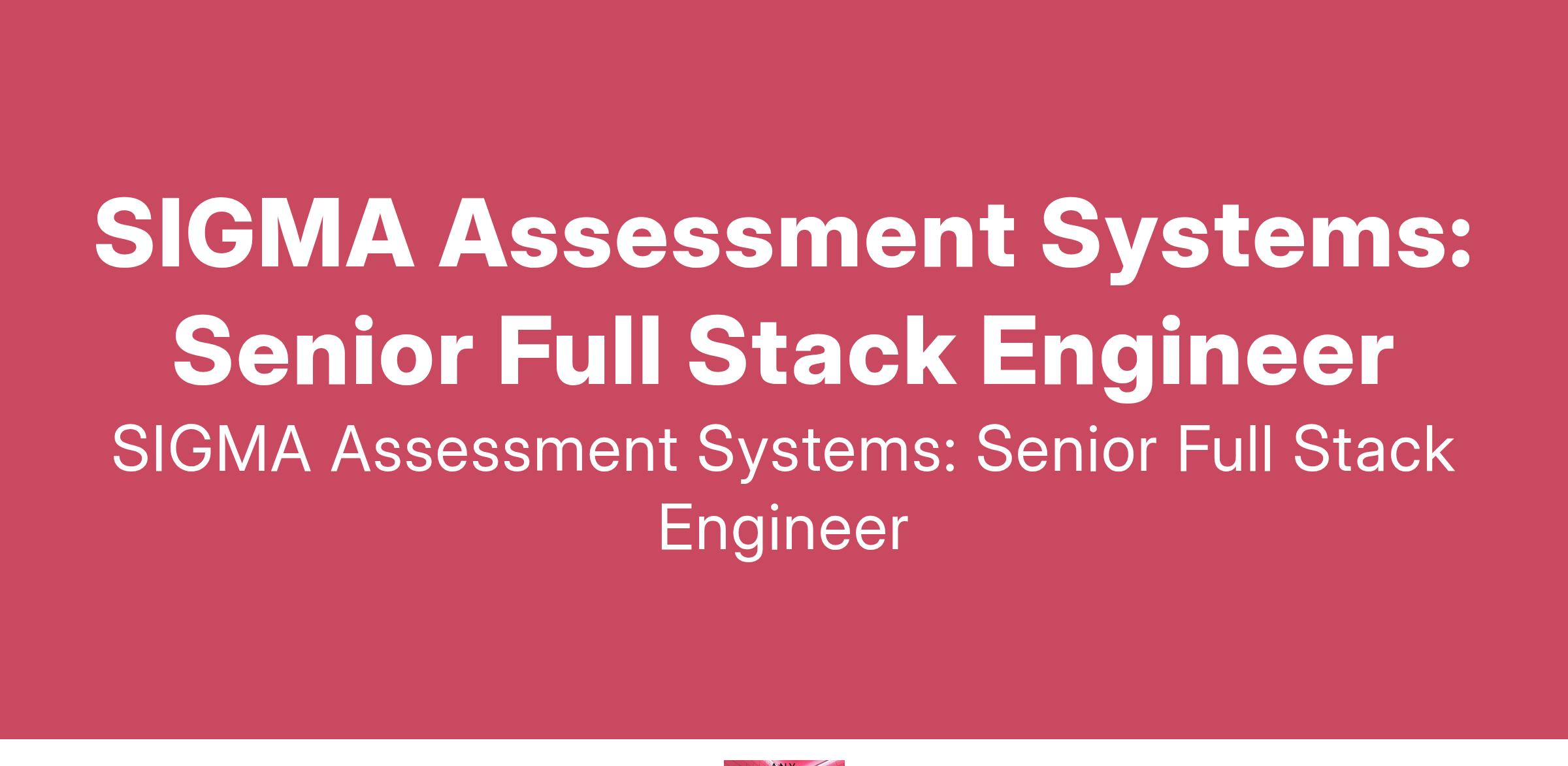 SIGMA Assessment Systems is seeking a Senior Full-Stack Engineer to help us develop our next-generation assessment platform for administering high-stakes psychometric/psychological testing to support organizations with selection, placement, planning and development decisions.