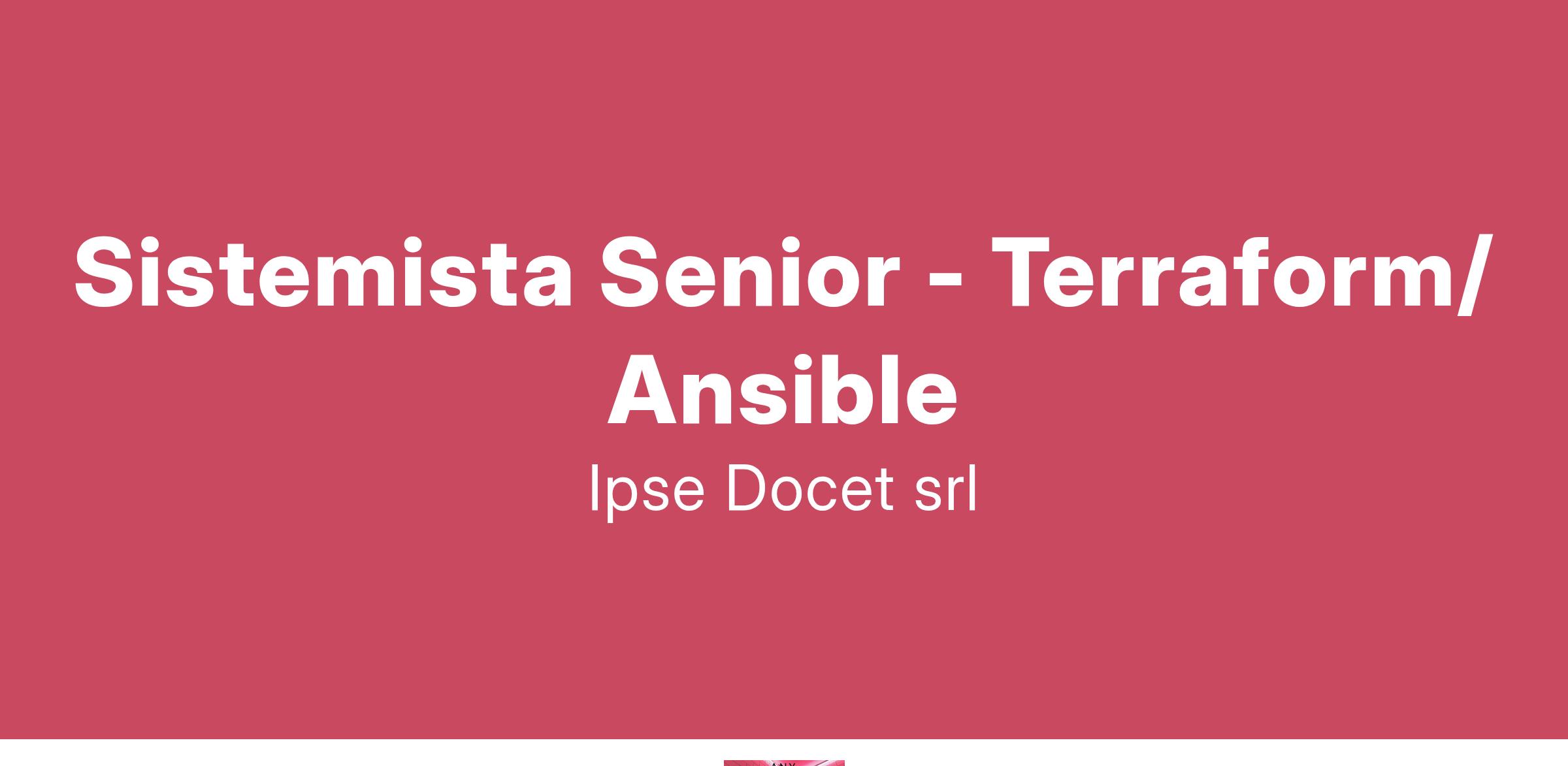 CHI SIAMO Ipse Docet S.r.l. è una società di consulenza tecnico – applicativa e operante nel settore informatico. Costituita nell’anno 2008, si è oggi affermata come uno dei player principali nel mercato italiano. I nostri consulenti lavorano presso i grandi gruppi bancari, assicurativi, Telco ed altre società del tessuto industriale italiano, attraverso progetti diretti e in partnership con le big della consulenza. DESCRIZIONE DEL RUOLO Siamo alla ricerca di una figura senior, che conosca Terraform ed Ansible. La risorsa selezionata, in qualità di Sistemista con esperienza in DevOps e Kubernetes, supporterà il Cliente nelle attività richieste. È richiesta la conoscenza di Terraform al fine di gestire e creare da zero infrastrutture Cloud tramite codice ed è anche richiesta la conoscenza di Ansible, così che si riesca a creare configurazioni iniziali. Il team di riferimento è di medie dimensioni. OFFERTA : Assunzione a tempo indeterminato, CCNL Commercio (14 mensilità); Qualora si possegga la Partita Iva, si valutano anche collaborazioni con Liberi Professionisti. Sede di lavoro: Remote working.