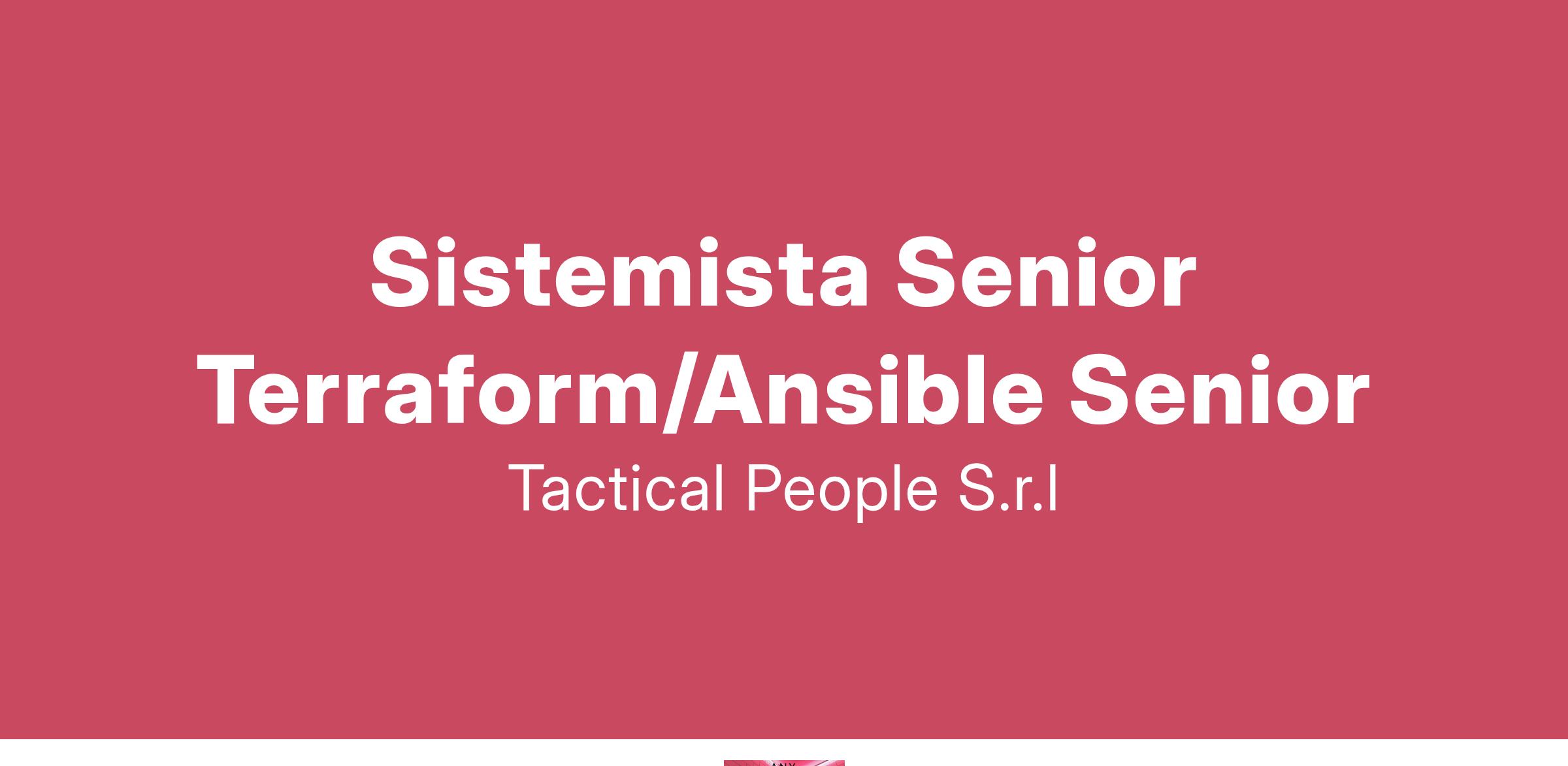 Unisciti a TACTICAL PEOPLE: Innovazione, Persone e Crescita nel Cuore della Digital Transformation Da oltre 20 anni, TACTICAL PEOPLE si posiziona come leader nel mercato ICT, guidando con passione e competenza i nostri clienti di medie e grandi dimensioni attraverso il dinamico percorso della digital transformation. La nostra mission è chiara: non solo abbracciare il cambiamento tecnologico, ma guidarlo, creando soluzioni all'avanguardia che plasmino il futuro digitale. In TACTICAL PEOPLE, crediamo fortemente nel mettere le persone al centro di ogni nostra iniziativa. Le persone sono il cuore pulsante della nostra azienda; il loro benessere, la loro crescita e il loro sviluppo sono la nostra priorità. Ci impegniamo a condividere le strategie aziendali con trasparenza e a fornire formazione e supporto a ogni livello, garantendo che ogni membro del team sia equipaggiato per eccellere e innovare. Stiamo cercando individui che condividano la nostra visione, che siano guidati dalla passione per la tecnologia e che desiderino essere protagonisti nella costruzione di un futuro digitale più luminoso. Se sei pronto a far parte di una squadra che valorizza il talento, incoraggia la crescita personale e professionale e lavora in prima linea nel settore della digital transformation, TACTICAL PEOPLE è il posto giusto per te. Posizione Aperta: Sistemista Senior Terraform/Ansible Senior Sede: Remoto Descrizione del Ruolo: Il candidato ideale deve avere almeno 5 anni di esperienza in ambito DevOps. Cosa offriamo: Inserimento immediato in una Tech Community giovane e dinamica. TACTICAL LEARNING HUB, con corsi di aggiornamento e formazione. Il presente annuncio è rivolto ad entrambi i sessi, ai sensi delle leggi 903/77 e 125/91, e a persone di tutte le età e tutte le nazionalità, ai sensi dei decreti legislativi 215/03 e 216/03. I curricula dovranno pervenire completi di dicitura che autorizza il trattamento dei propri dati: “Si autorizza al trattamento dei dati personali ai sensi del D. Lgs. 196/2003.