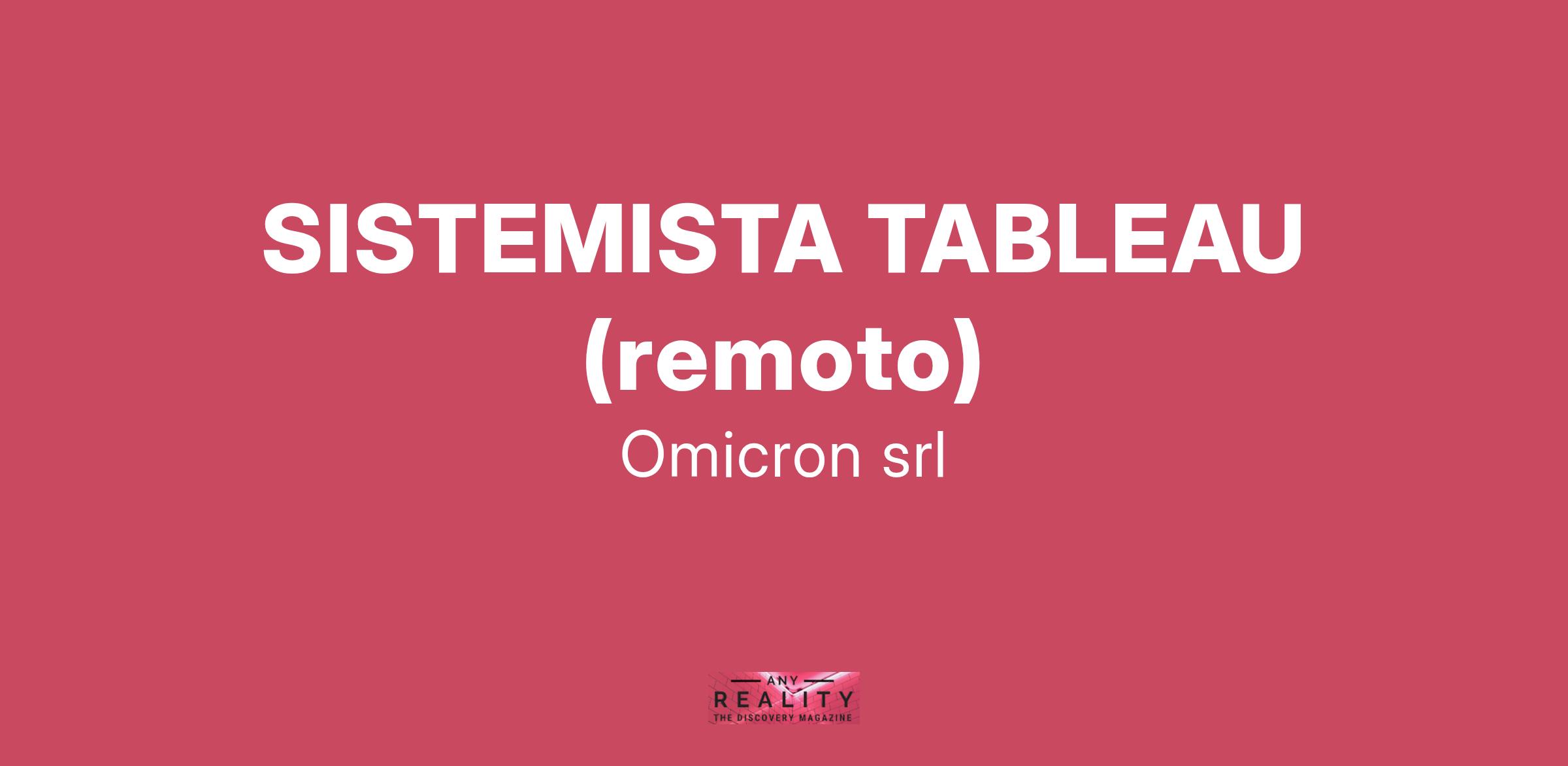 Omicron S.r.l., società in forte espansione nell’area della consulenza informatica ricerca: SISTEMISTA TABLEAU (remoto) La risorsa supporterà il cliente finale nelle attività in qualità di specialista Administrator Tableau Cloud. Lavorerà con un team di medie dimensioni. La risorsa potrà confrontarsi con progetti complessi in ambito Industry per un importante cliente. Conoscenze professionali obbligatorie: • Tableau Soft Skills richieste: Autonomia nella gestione dei propri tasks e propensione al lavoro in team. Si offre: •Possibilità di contratto a tempo indeterminato. •Retribuzione fissa commisurata alle effettive competenze maturate. Sede di lavoro: remoto Gl’interessati possono candidarsi inviando il CV all'indirizzo mail: L’offerta si intende rivolta a candidati ambosessi, nel rispetto del D.Lgs. n. 198/2006 e ss.mm.ii. e dei Decreti Legislativi n. 215 e n. 216 del 2003 sulle parità di trattamento. I candidati sono invitati a leggere l’informativa privacy ai sensi degli artt. 13 e 14 del Reg. EU 679/2016.