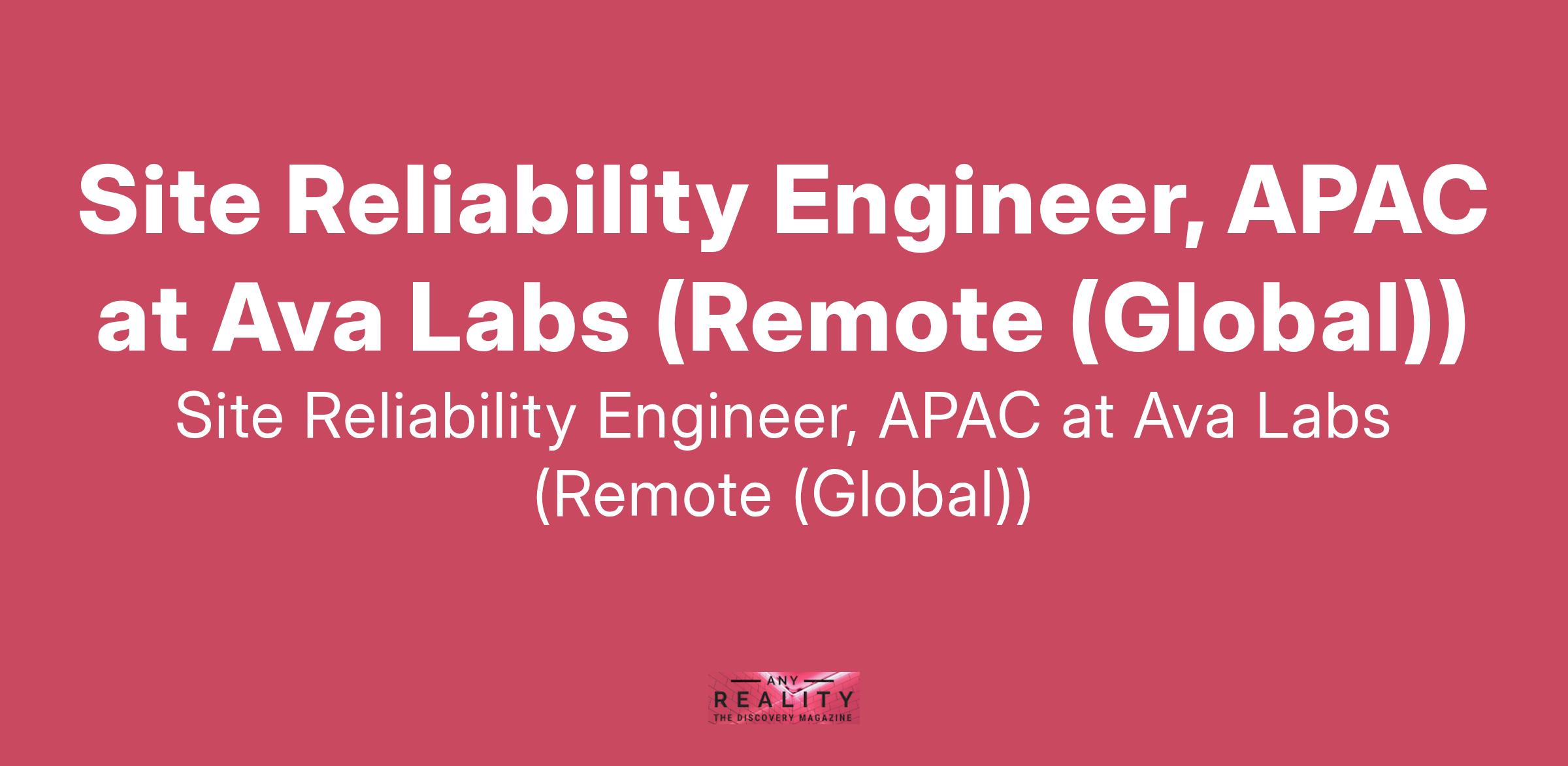 Site Reliability Engineer, APAC at Ava Labs (Remote (Global))