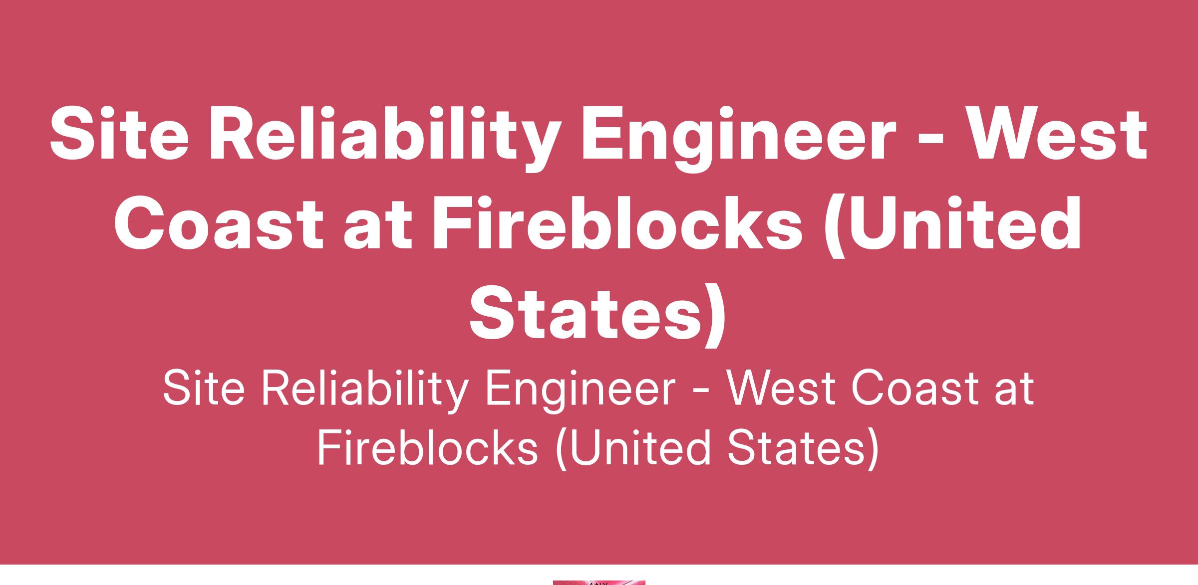 Site Reliability Engineer - West Coast at Fireblocks (United States)
