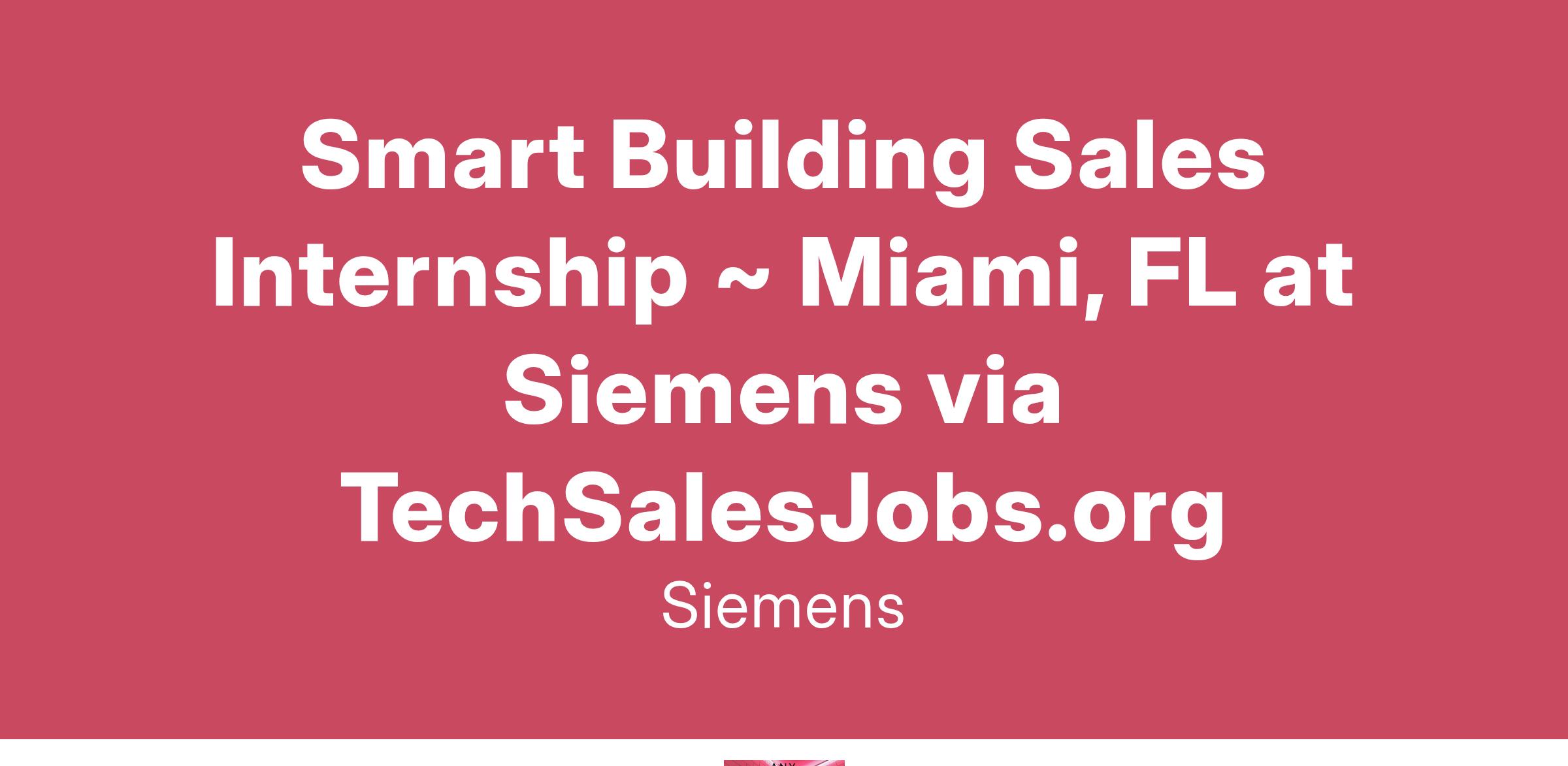 We are looking for a Smart Buildings Sales Intern. This position will be based at our Miramar, FL location which is in Miami, FL.