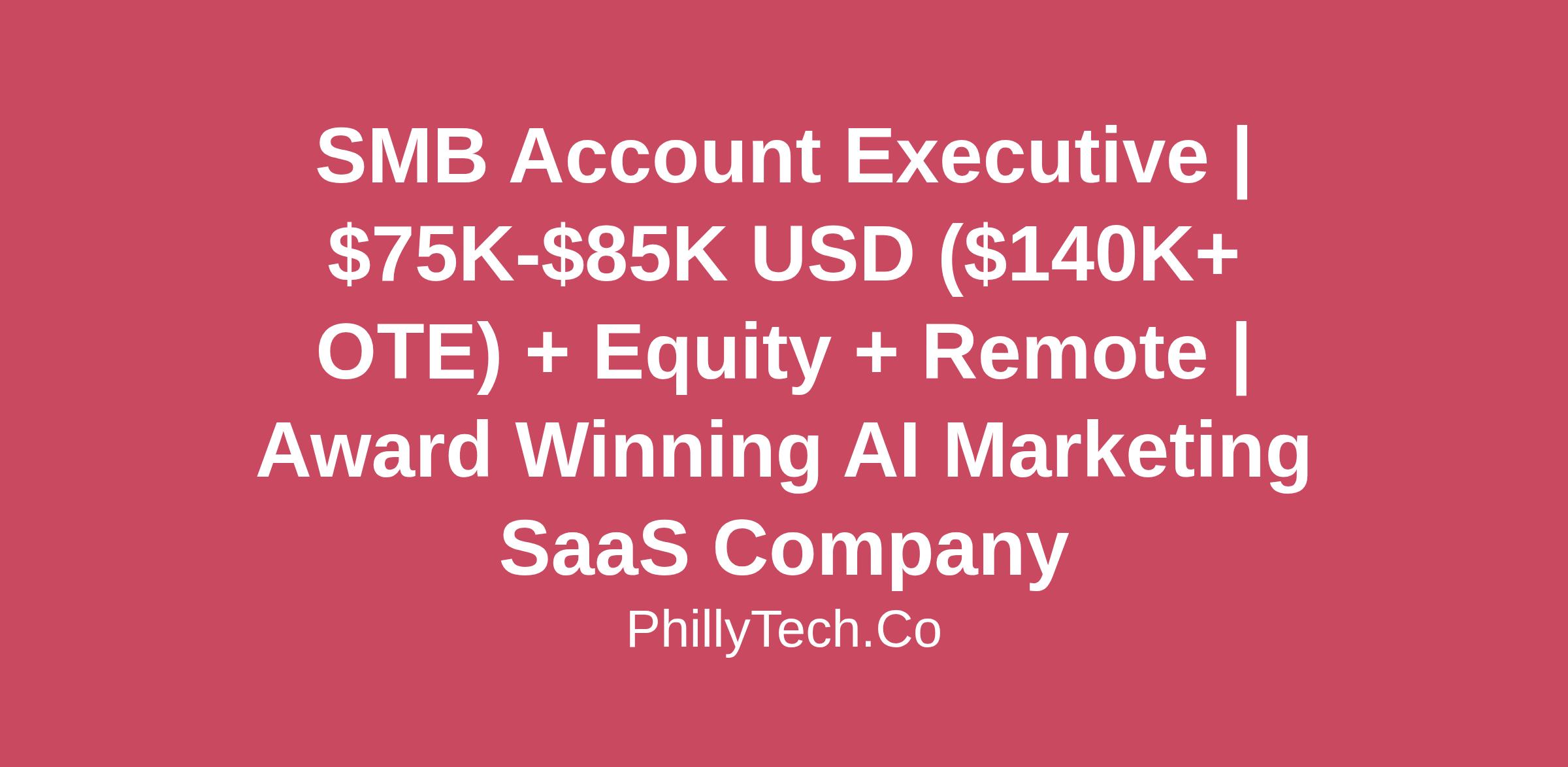 SMB Account Executive | $75K-$85K USD ($140K+ OTE) + Equity + Remote | Award Winning AI Marketing SaaS Company