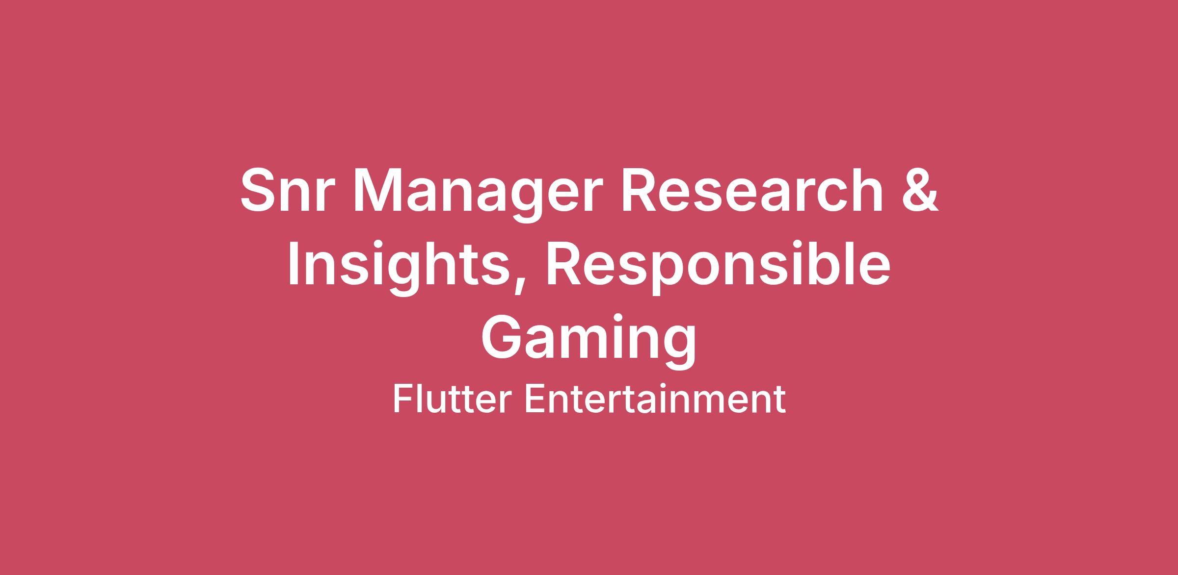 Job Title: Snr Manager – Research & Insights, Responsible Gaming