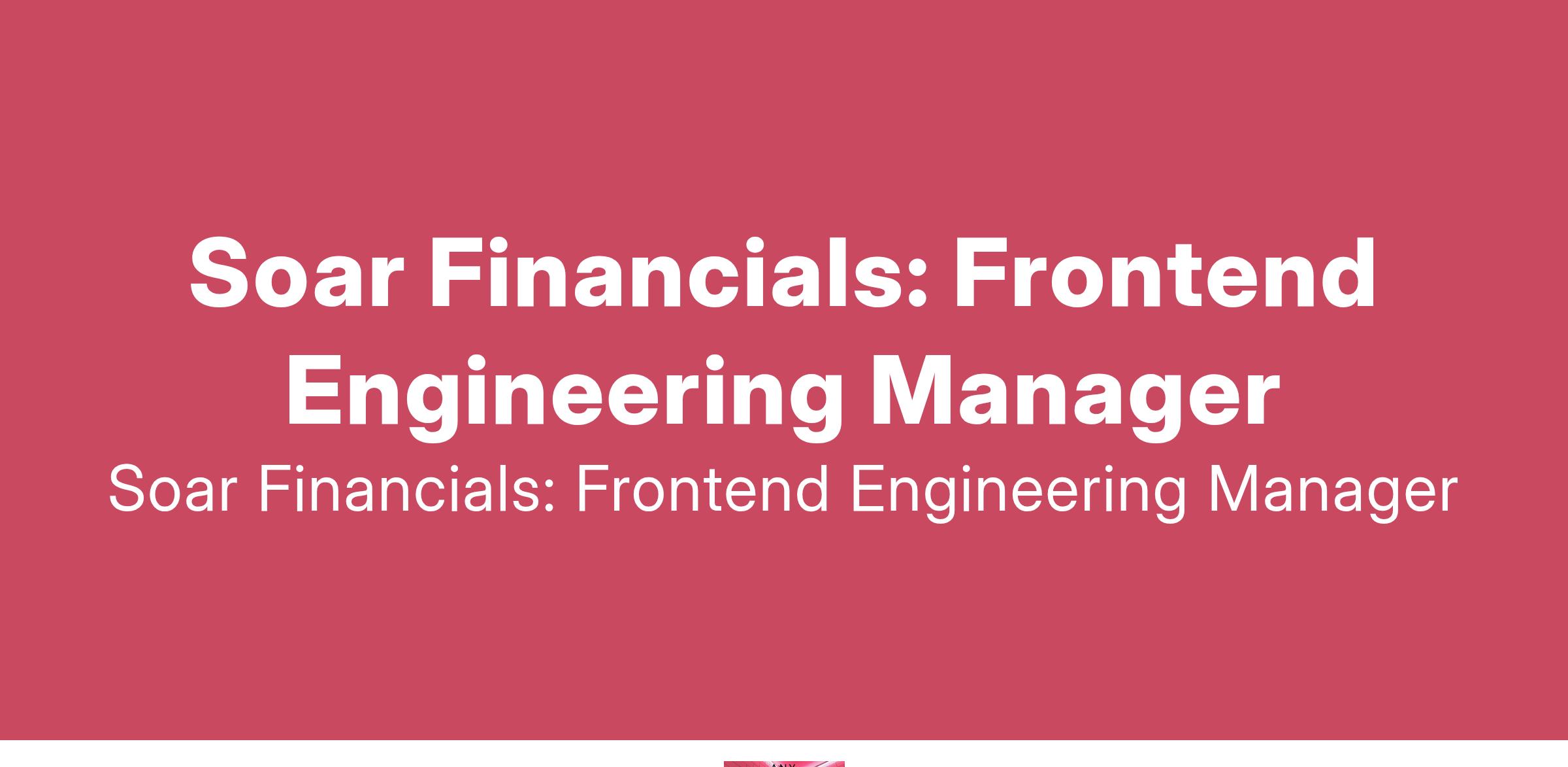 To apply: https://weworkremotely.com/remote-jobs/soar-financials-frontend-engineering-manager