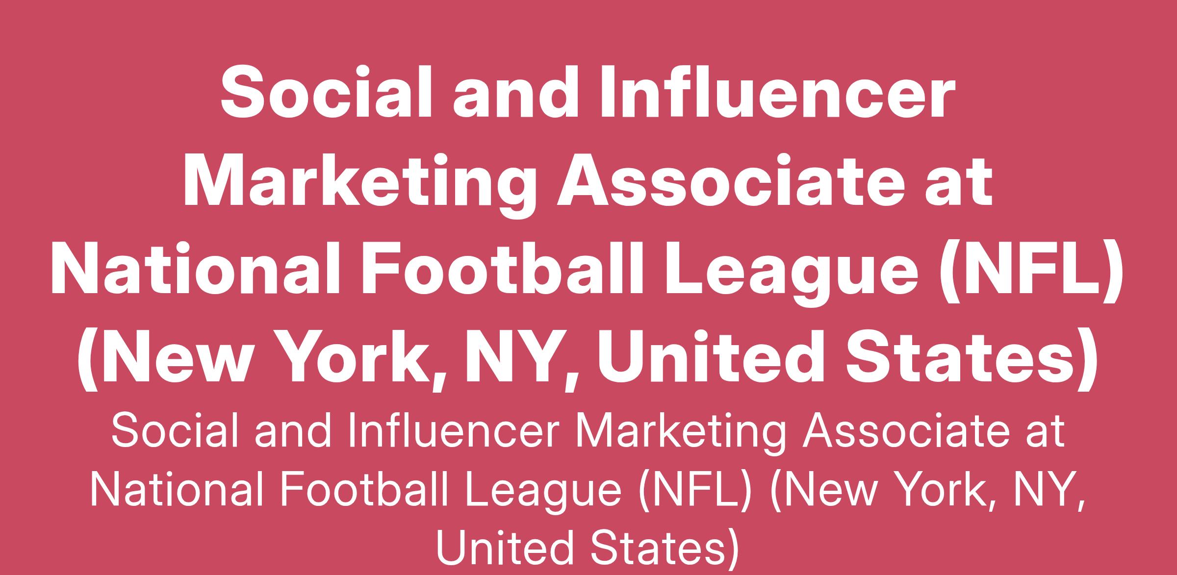 Social and Influencer Marketing Associate at National Football League (NFL) (New York, NY, United States)
