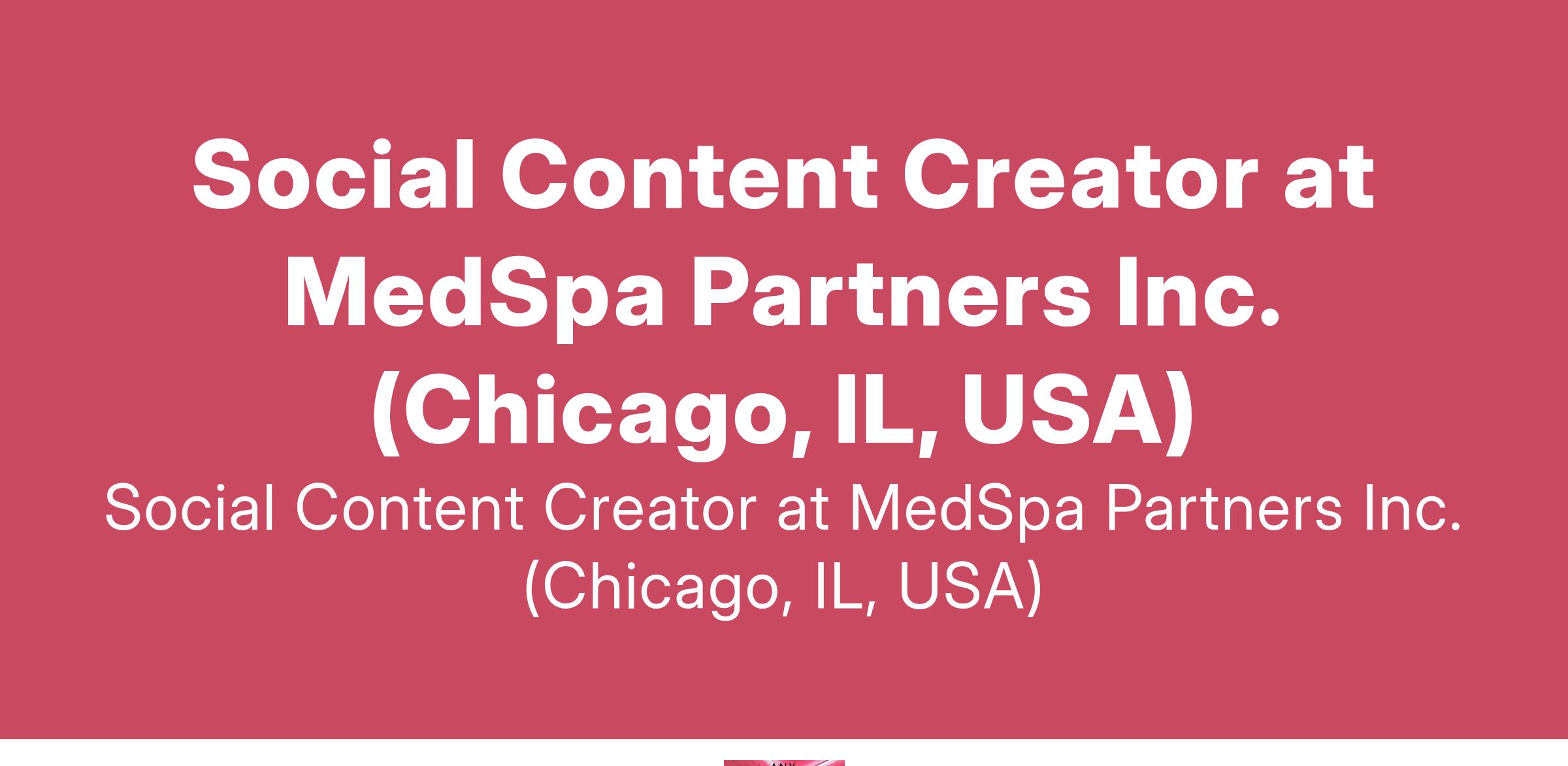 Social Content Creator at MedSpa Partners Inc. (Chicago, IL, USA)