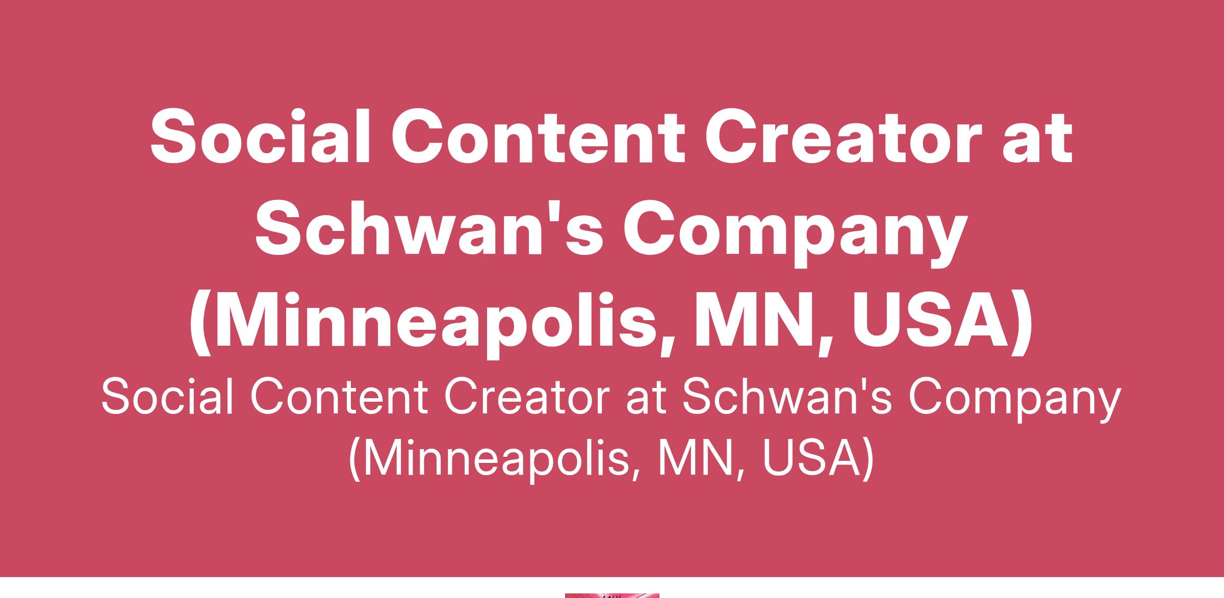 Social Content Creator at Schwan's Company (Minneapolis, MN, USA)