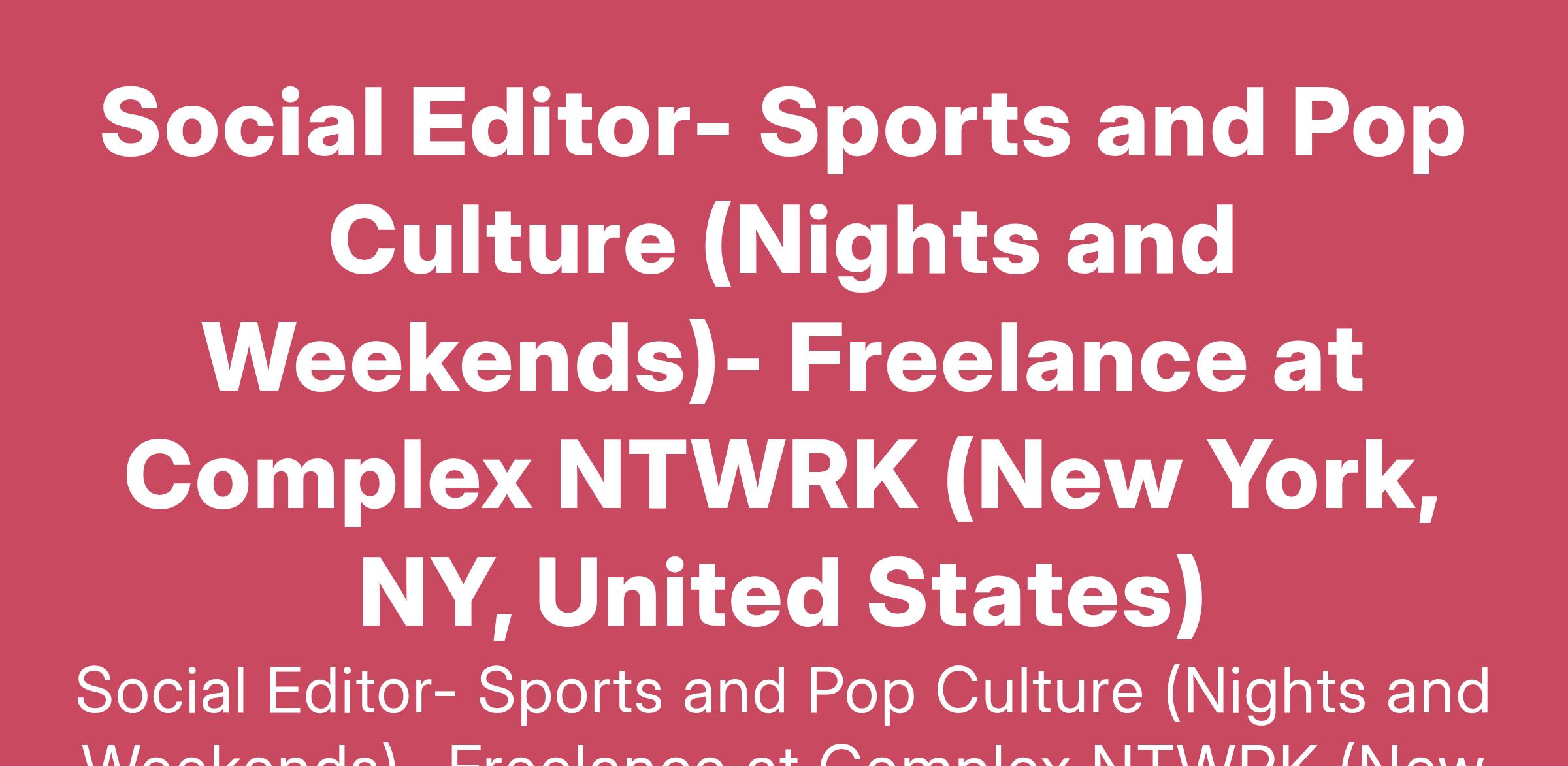 Social Editor- Sports and Pop Culture (Nights and Weekends)- Freelance at Complex NTWRK (New York, NY, United States)