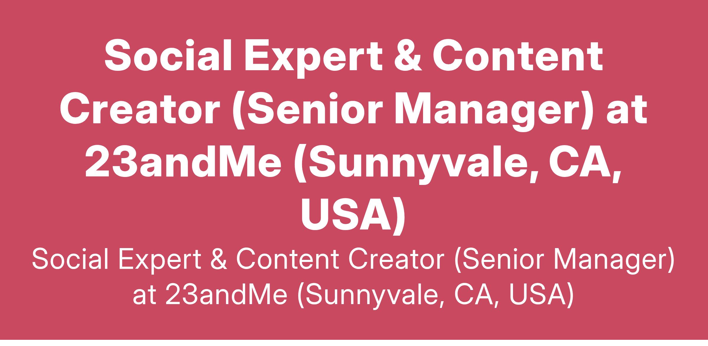 Social Expert & Content Creator (Senior Manager) at 23andMe (Sunnyvale, CA, USA)