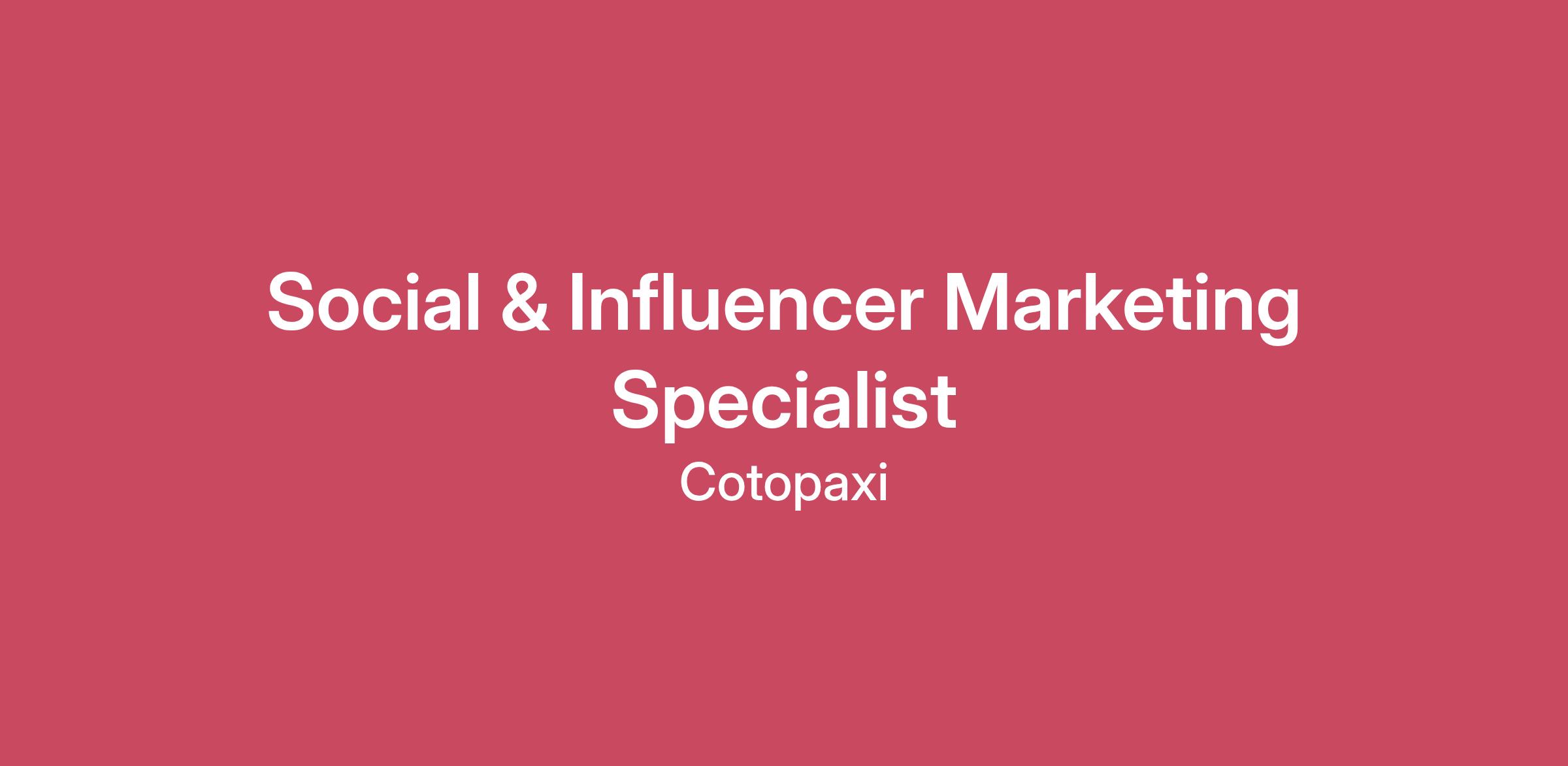 Job Title: Social & Influencer Marketing SpecialistJob Level: Entry-LevelJob Type: Full-Time, ExemptJob Location: Cotopaxi HQ: Salt Lake City, Utah (Remote Work Available in MST or PST)Job Compensation: $65-75k plus annual bonus potentialAbout Cotopaxi:We make adventure travel gear to empower people to see the world and make it better. As a Certified B Corporation, our Gear for GoodⓇ promise drives everything we do - from ethical and sustainable sourcing to products built to last and create lasting change. Through the Cotopaxi Foundation, we dedicate 1% of our revenue to nonprofits that fight poverty and support communities in need. So far, we’ve helped more than 4.25 million people experiencing extreme poverty - and we’re just getting started.Our team is full of passionate, curious, and mission-driven people who love adventure and believe business can be a force for good. Whether you’re working from a retail shop, our Salt Lake City HQ, your home, or your van in the woods, you’ll find connection, collaboration, and a shared drive to make a difference. Job Overview (What This Role Is All About):Cotopaxi is seeking a Social & Influencer Marketing Specialist to support the execution of our influencer partnerships and paid UGC content pipeline. Working closely with the Influencer Marketing Manager and Social Media Manager, this role will own the day-to-day operations of creator programs, including creator communications, briefing, product seeding and orders, paid UGC coordination, and supporting an active, engaged social community.This role is a great fit for someone with early career experience in social media, influencer marketing, or digital marketing who enjoys working with creators and brings strong organization, attention to detail, and enthusiasm for contributing to a growing, mission-driven brand.Job Responsibilities (How You’ll Make An Impact):Influencer & Paid UGC ExecutionPartner with the Influencer Marketing Manager to execute paid influencer and UGC programs, owning day-to-day creator communications, outreach, briefing, deliverable tracking, and timelines.Lead execution across assigned creator partnerships, including outreach follow-ups, product sends, content coordination, approvals, and usage rights.Support creator contracting and negotiations by coordinating agreements, internal approvals, and documentation.Manage the flow of influencer and UGC content through internal review and into paid media activation. Program Operations & LogisticsOwn product orders across social, influencer, and PR teams, ensuring accuracy and timely delivery.Maintain creator tracking, campaign documentation, contracts, and usage rights records.Support creator onboarding and coordination across assigned campaigns. Community, Content & Asset CoordinationManage select areas of community engagement across social platforms, including responses and issue escalation.Monitor brand mentions, creator tags, and sentiment, partnering with Customer Experience and PR as needed.Identify high-performing influencer and UGC content for use across organic social and paid media.Support asset organization and content capture for campaign and product launches. Reporting, Insights & OptimizationTrack performance across influencer and UGC initiatives, including content delivery, engagement, and paid media usagePartner with the Influencer Marketing Manager and Paid Media team to compile performance insights and post-campaign summaries.Apply learnings to future briefs, workflows, and creator recommendations. Platform & Trend AwarenessStay current on influencer, creator, and UGC trends, sharing insights with the broader social team to support iteration and optimization. The Ideal Candidate (What You’ll Bring to the Table):1-3 years of experience in social media, influencer marketing, or digital marketing (internships and relevant hands-on experience included).Experience working with influencers, creators, or ambassador programs in any capacity.Strong organizational skills and attention to detail, with the ability to manage timelines, orders, and logistics accurately.Clear written and verbal communication skills.Comfort working across Google Workspace, spreadsheets, and social platforms.Familiarity with major social platforms, including Instagram and TikTok.Ability to collaborate effectively across teams in a remote or distributed environment.Job Benefits (Your Perks):At Cotopaxi, we care deeply about our people. Our team is at the heart of everything we do, and we’re proud to invest in their growth, well-being, and success. We prioritize fair wages, meaningful benefits, and an employee experience that supports balance, belonging, and purpose - inside and outside of work.Here is a snapshot of the benefits we provide:Health Benefits:Medical, dental and vision benefits with HSA, FSA, and DCSA options.Company-paid basic life insurance with the option to purchase additional coverage.Voluntary short-term and long-term disability coverage.Voluntary accident and critical illness insurance.Company-paid employee assistance program.Wellness Benefits:Company-paid volunteer time.401(k) plan with employer match.Unlimited responsible PTO.In The Wild Days: Two company-wide days off to recharge, reconnect, and embrace what inspires you.Uniquely Us:Enjoy deep product discounts with 60% off Cotopaxi gear - perfect for living out your next adventure in style.Gear up for the outdoors with exclusive discounts from partner outdoor and lifestyle brands.Grow personally and professionally through thoughtfully curated learning and development opportunities.Stay connected and celebrate often with regular in-person and virtual events that bring our team together, no matter where you work.Be part of a vibrant, values-driven culture that champions people, innovation, and adventure in everything we do. Incentive Potential: This position is eligible for compensation awards that may include an annual incentive plan, sales incentive, or commissi