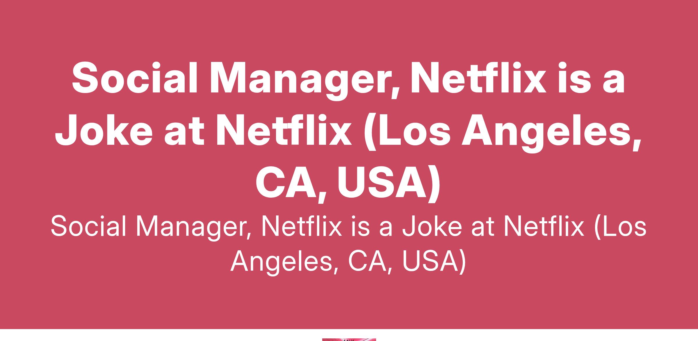 Social Manager, Netflix is a Joke at Netflix (Los Angeles, CA, USA)