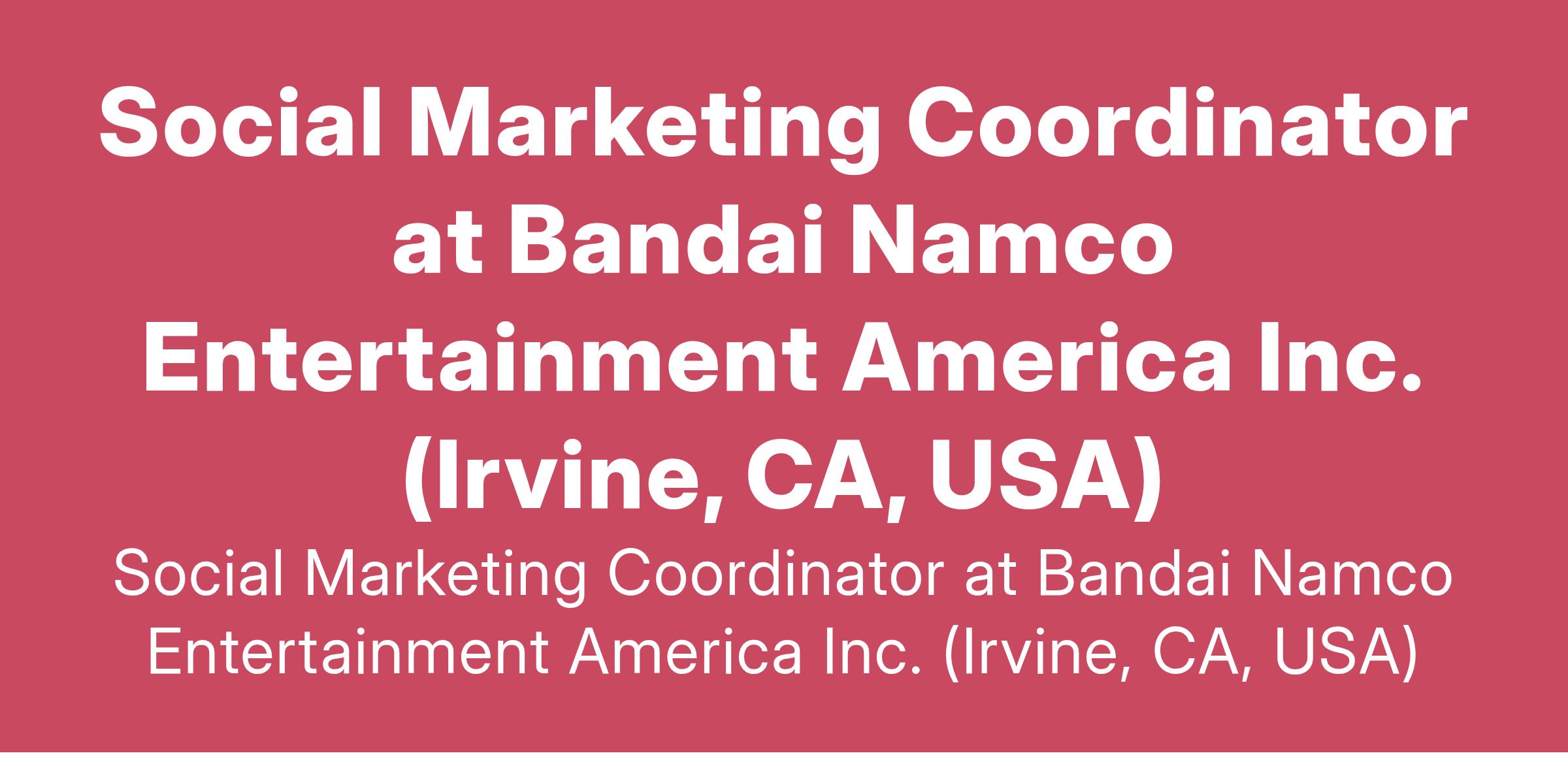 Social Marketing Coordinator at Bandai Namco Entertainment America Inc. (Irvine, CA, USA)