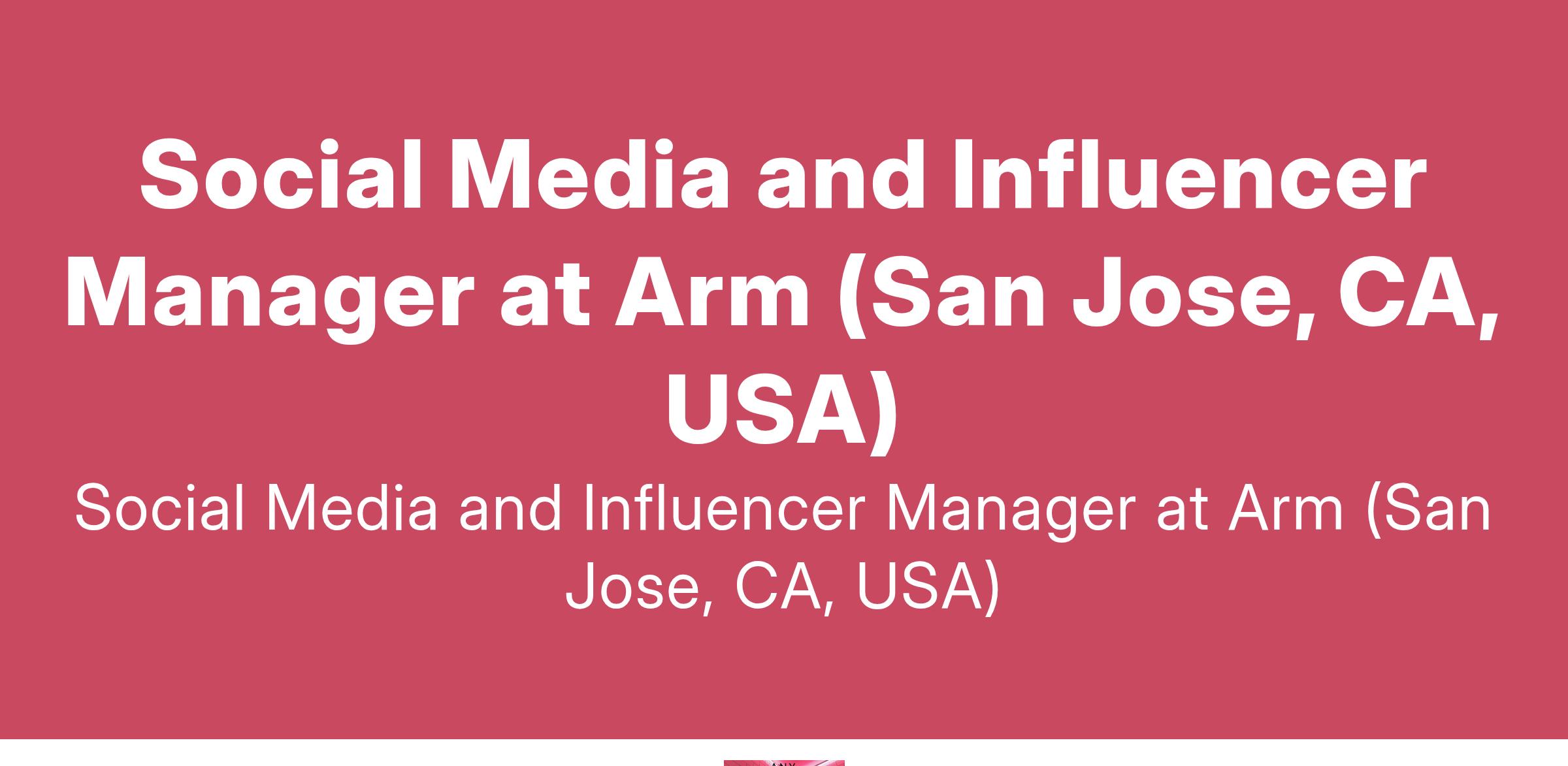 Social Media and Influencer Manager at Arm (San Jose, CA, USA)