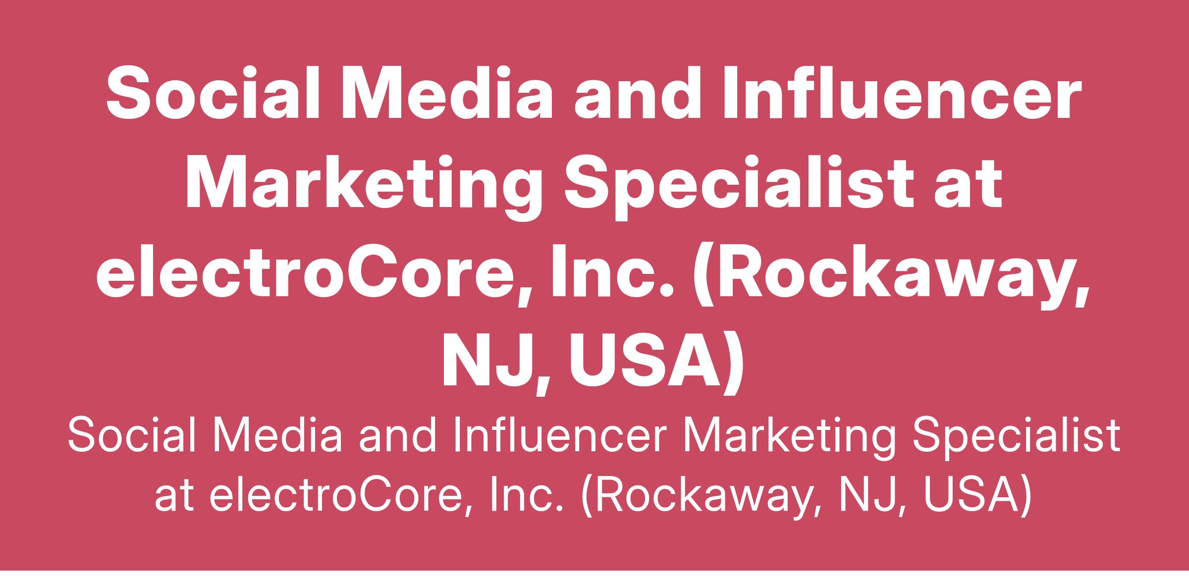 Social Media and Influencer Marketing Specialist at electroCore, Inc. (Rockaway, NJ, USA)