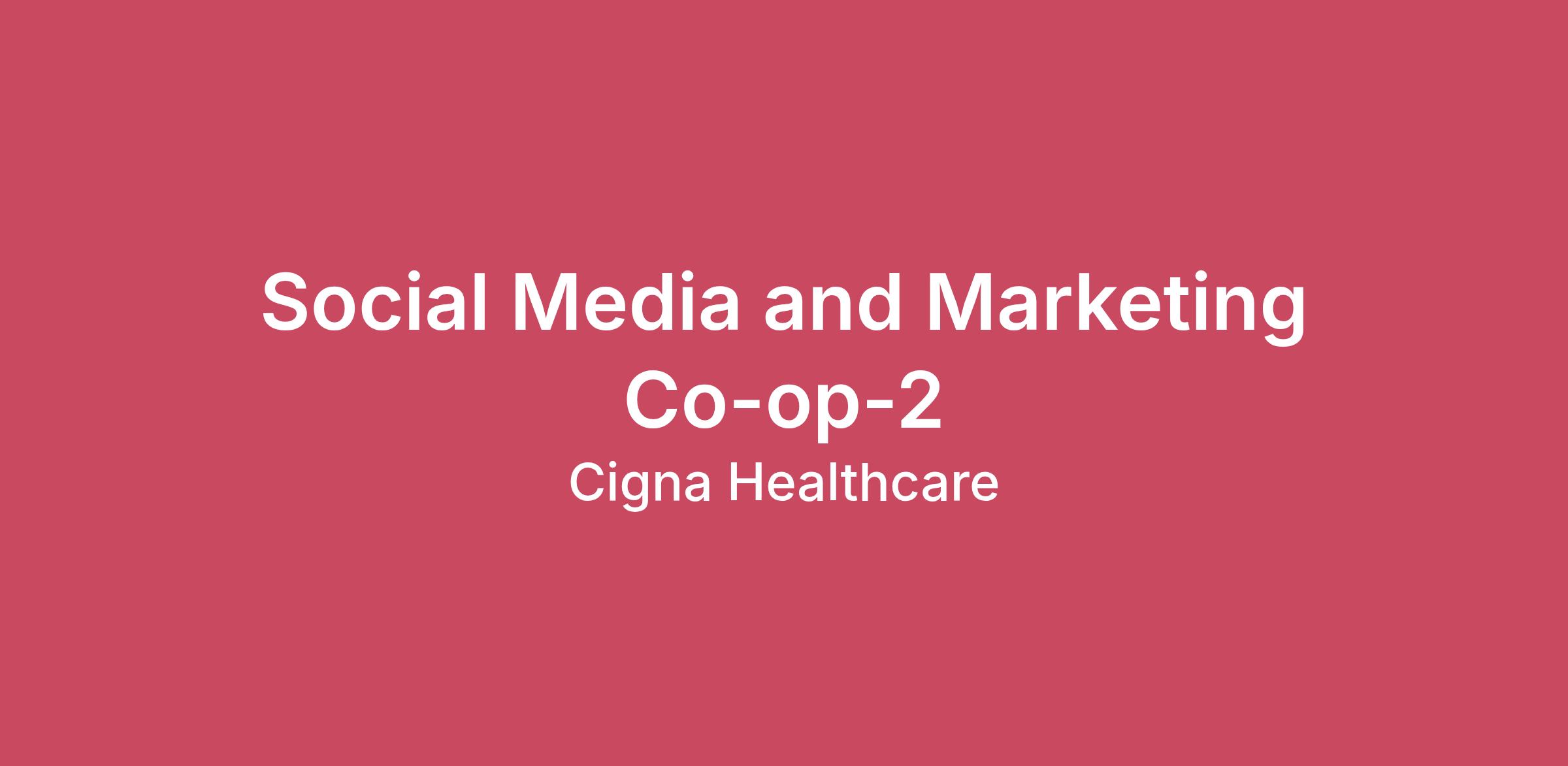 Looking for an internship program where you'll make a real difference – rather than just completing busy work? Then you've come to the right place. Cigna's Internship Program is designed to assign you projects that have a lasting impact on our business – which touches millions of people across the globe. As an intern, you'll get an inside look at your desired field, while working next to some of the best in the industry. This opportunity will allow you to network with employees across the organization and prepare you for a future career.Where You’ll WorkThis position will support the Social Media Center of Excellence and ill work with team members to support the creation of compelling social media content, managing and engaging on social platforms, conducting social advertising campaigns, monitoring feeds, and social media analytics reports.What You’ll DoHelping to create research and content assets and supporting materials to executive social media campaignsMonitor day-to-day content on social media platforms (i.e. Facebook, Twitter, Instagram, and more)Perform social media metrics analysis and reportingDevelop paid social advertising plans and social strategies with advertising execution QualificationsPursuing an undergraduate degree with a focus in marketing, business, communications or a related field. Minimum 3.0 GPA preferred.Previous experience in social media and basic social content designExcellent verbal and written communication skillsStrong business aptitude and problem solving skillsAbility to work independently and as part of a teamEmerging leadership skills demonstrated through students organizations, academic products, or community involvementProficiency with Microsoft and Adobe Creative Cloud products such as Photoshop, InDesign and Illustrator is a plusSelf-starter who is eager to learn and acquire new skillsUS Candidates Only: This position is not eligible for visa sponsorship by the company, and therefore is open only to individuals who are eligible for employment in the United States and who would not require visa sponsorship now or in the future.If you will be working at home occasionally or permanently, the internet connection must be obtained through a cable broadband or fiber optic internet service provider with speeds of at least 10Mbps download/5Mbps upload.About The Cigna Group Doing something meaningful starts with a simple decision, a commitment to changing lives. At The Cigna Group, we’re dedicated to improving the health and vitality of those we serve. Through our divisions Cigna Healthcare and Evernorth Health Services, we are committed to enhancing the lives of our clients, customers and patients. Join us in driving growth and improving lives.Qualified applicants will be considered without regard to race, color, age, disability, sex, childbirth (including pregnancy) or related medical conditions including but not limited to lactation, sexual orientation, gender identity or expression, veteran or military status, religion, national origin, ancestry, marital or familial status, genetic information, status with regard to public assistance, citizenship status or any other characteristic protected by applicable equal employment opportunity laws.If you require reasonable accommodation in completing the online application process, please email: SeeYourself@cigna.com for support. Do not email SeeYourself@cigna.com for an update on your application or to provide your resume as you will not receive a response.The Cigna Group has a tobacco-free policy and reserves the right not to hire tobacco/nicotine users in states where that is legally permissible. Candidates in such states who use tobacco/nicotine will not be considered for employment unless they enter a qualifying smoking cessation program prior to the start of their employment. These states include: Alabama, Alaska, Arizona, Arkansas, Delaware, Florida, Georgia, Hawaii, Idaho, Iowa, Kansas, Maryland, Massachusetts, Michigan, Nebraska, Ohio, Pennsylvania, Texas, Utah, Vermont, and Washington State.Qualified applicants with criminal histories will be considered for employment in a manner consistent with all federal, state and local ordinances.