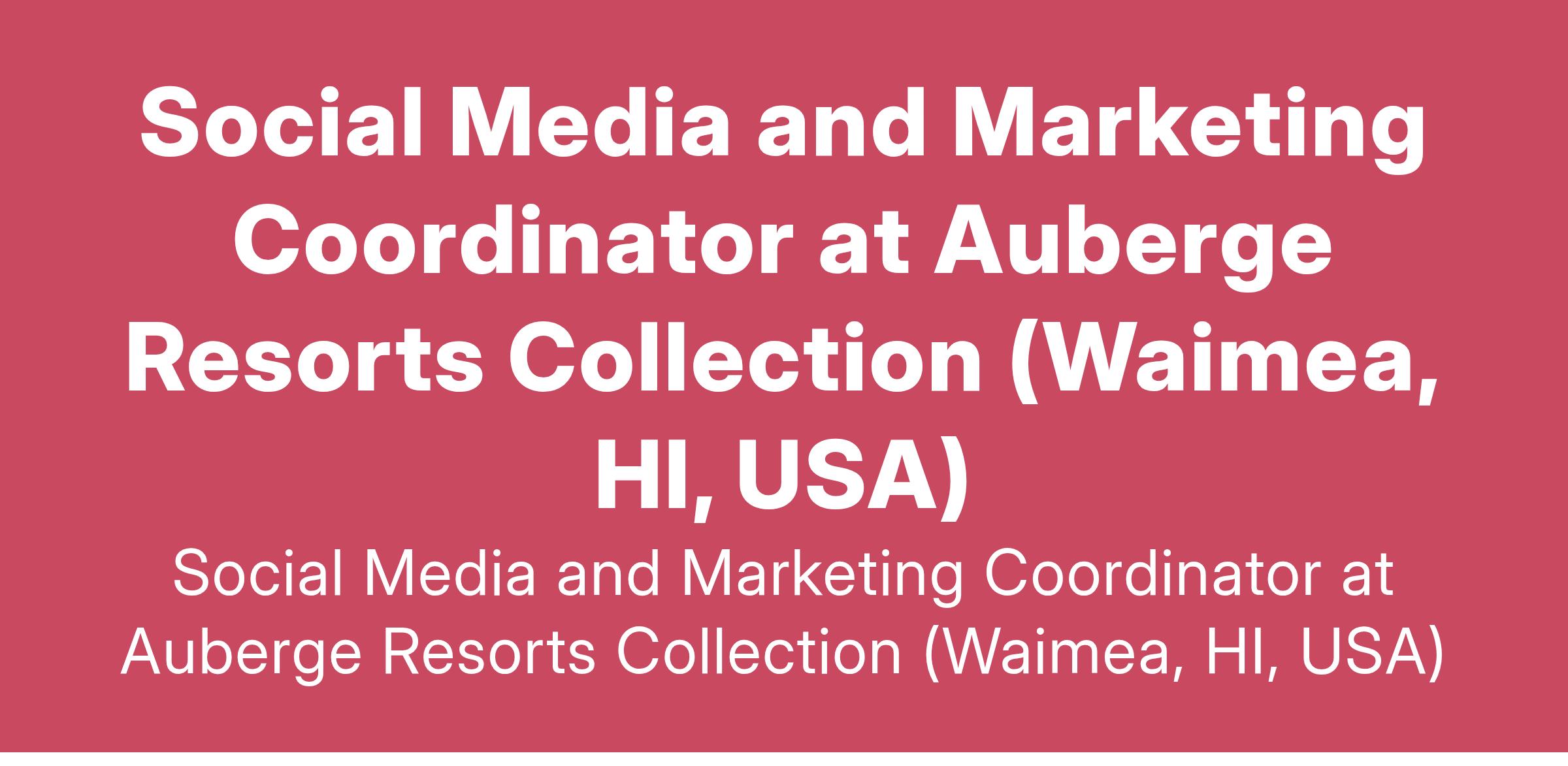 Social Media and Marketing Coordinator at Auberge Resorts Collection (Waimea, HI, USA)