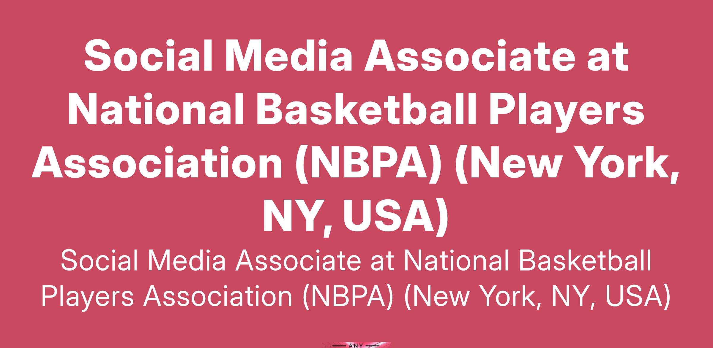 Social Media Associate at National Basketball Players Association (NBPA) (New York, NY, USA)