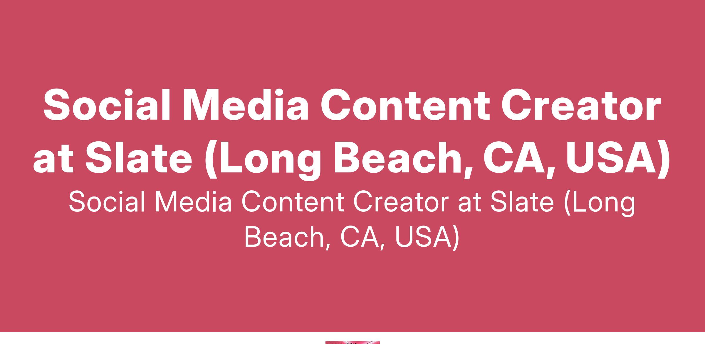 Social Media Content Creator at Slate (Long Beach, CA, USA)