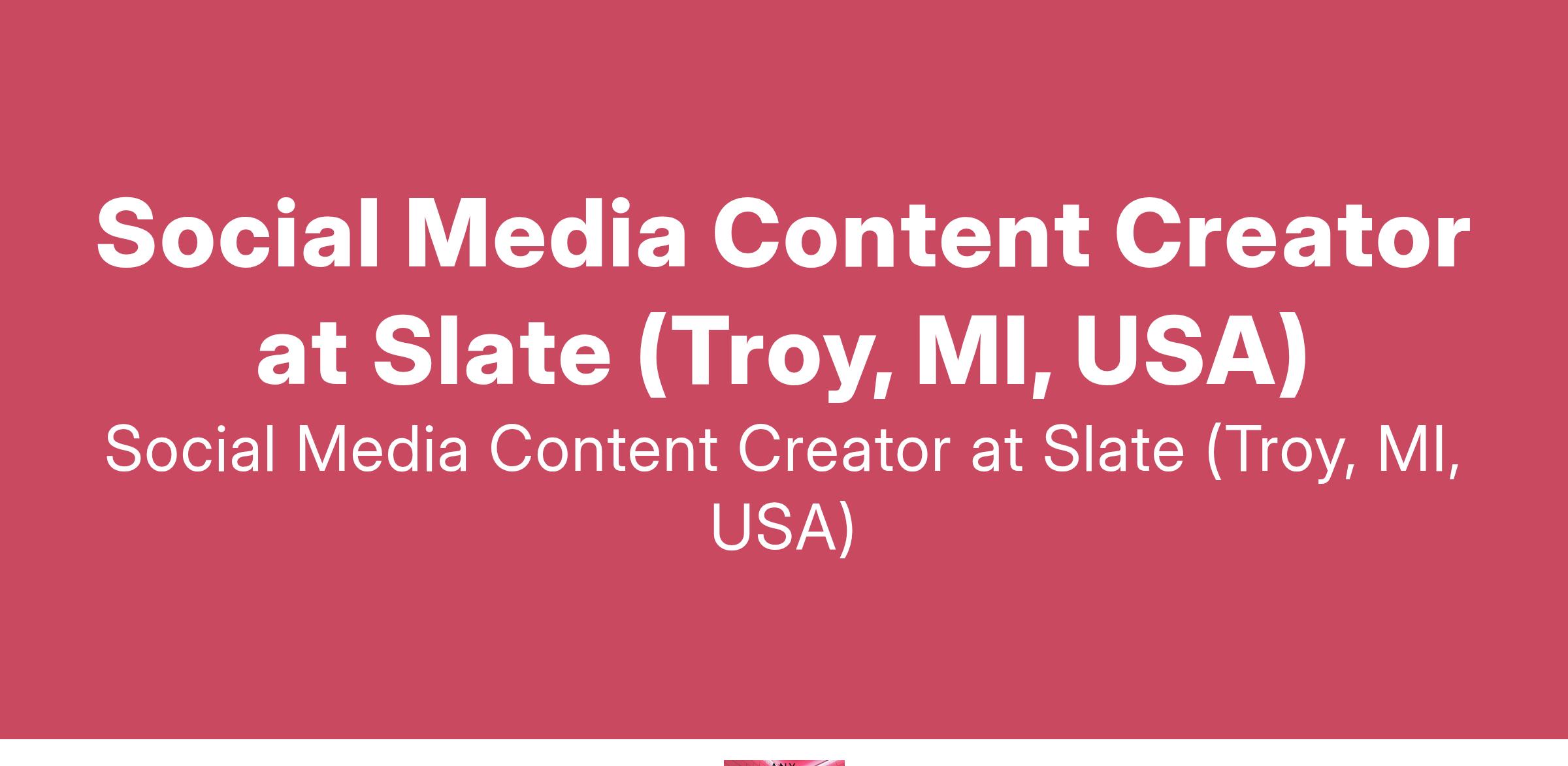 Social Media Content Creator at Slate (Troy, MI, USA)