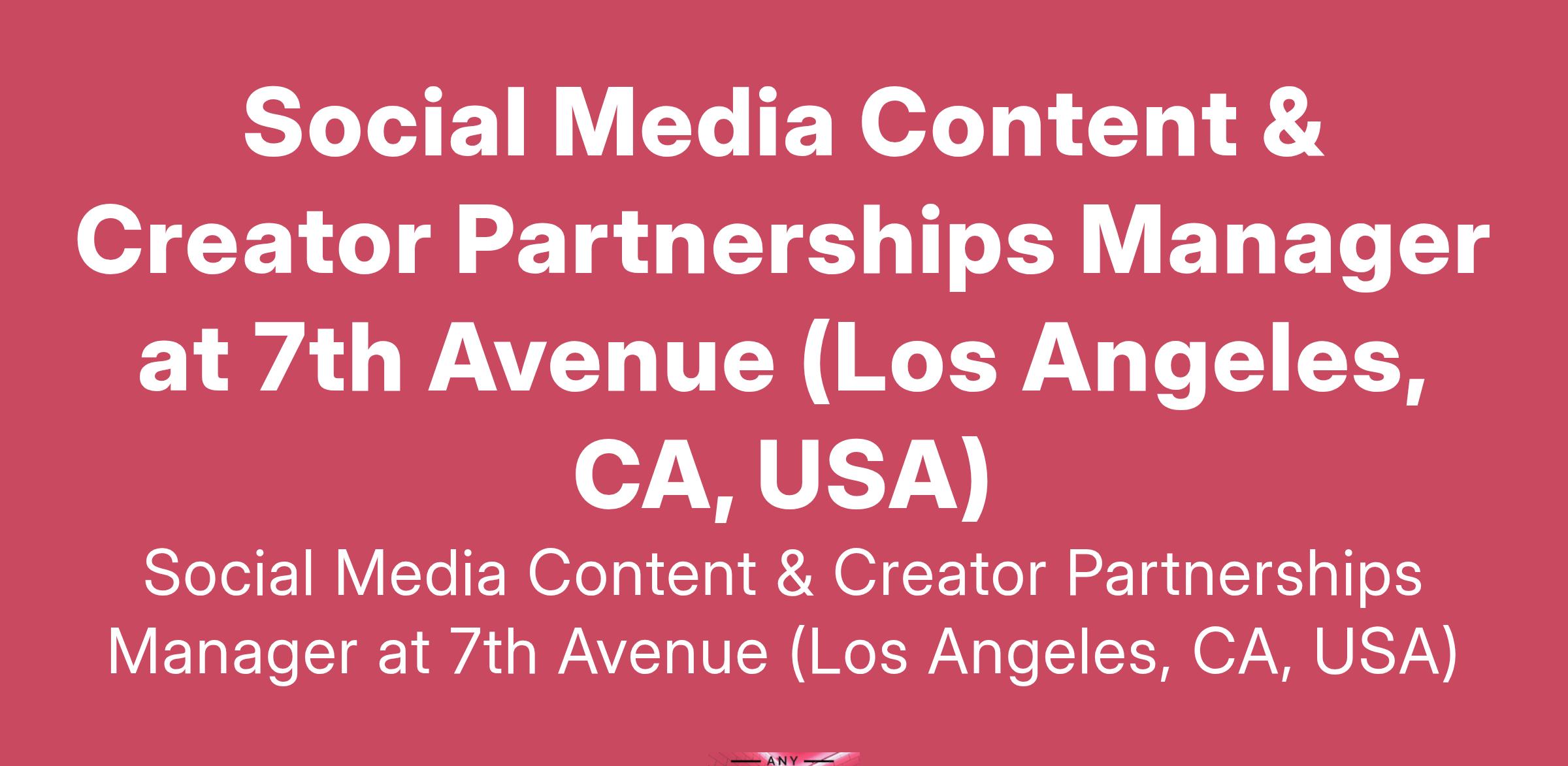 Social Media Content & Creator Partnerships Manager at 7th Avenue (Los Angeles, CA, USA)