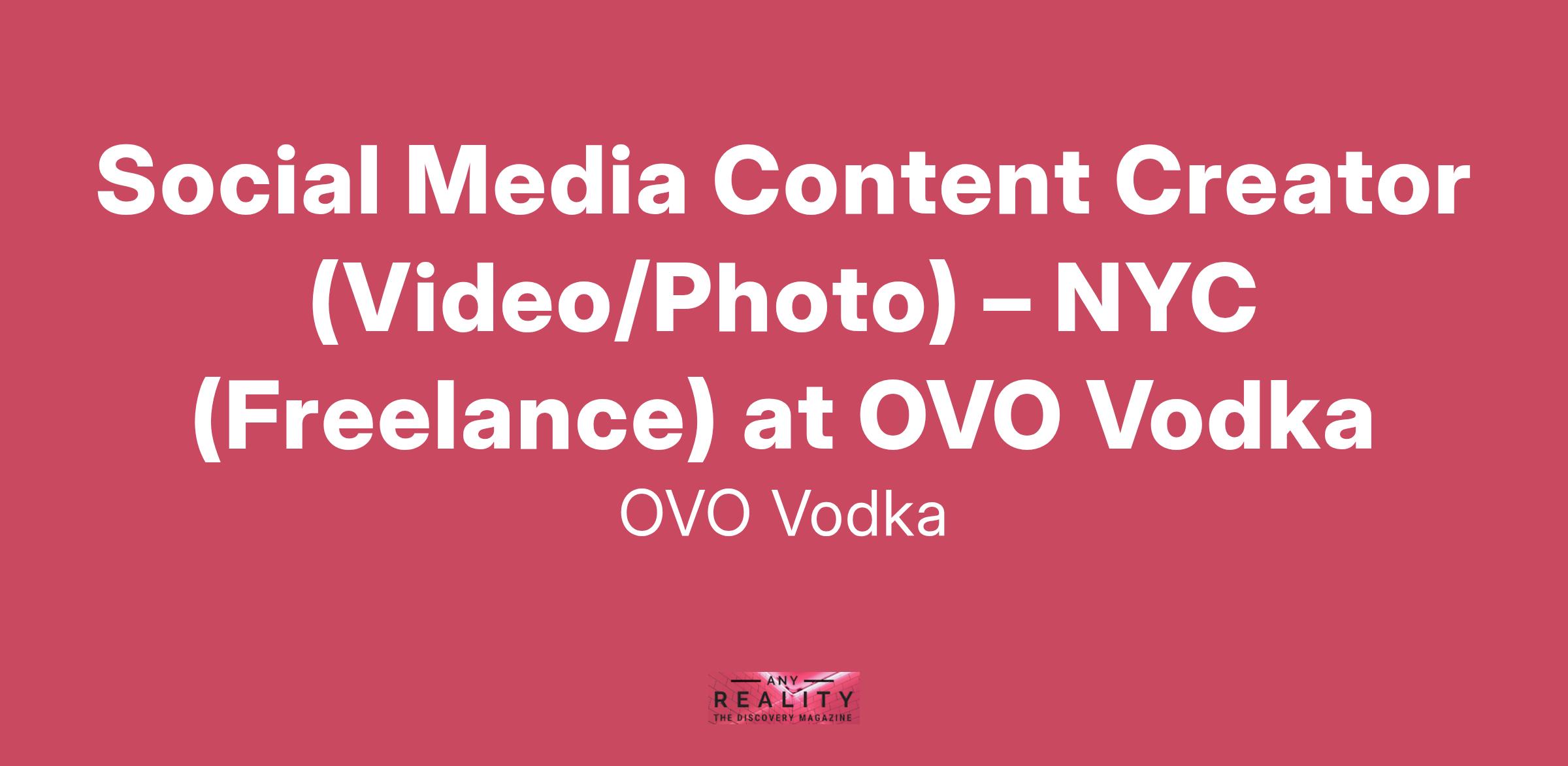 OVO Vodka, an award-winning sustainable vodka brand, is looking for a creative Social Media Content Creatorspecializing in video and photography to help bring our brand to life across digital platforms. This is a freelance, on-demand role (paid per day or hour), ideal for a dynamic content creator who can capture high-energy moments at events, in-store tastings, and behind-the-scenes brand content.