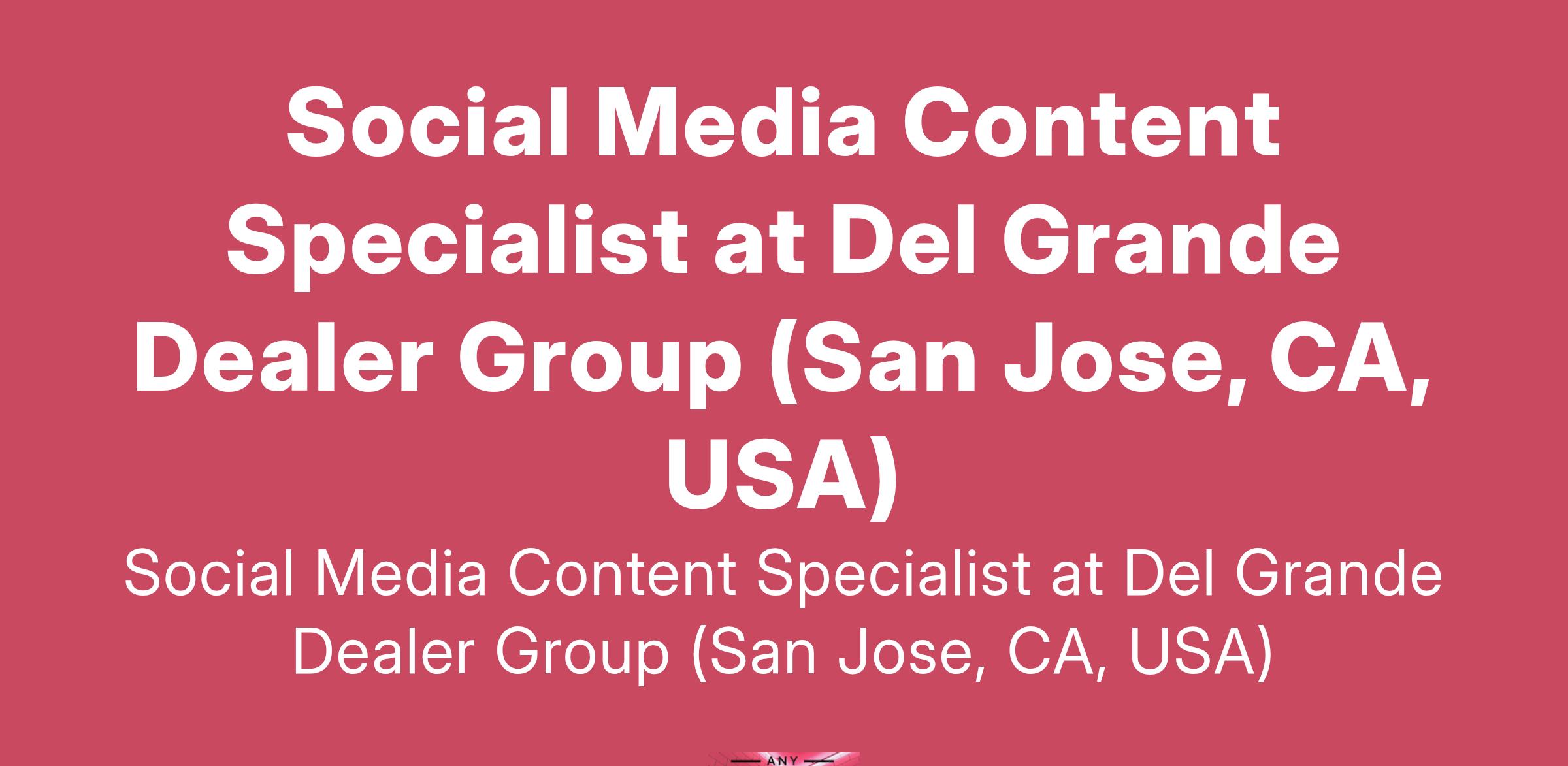 Social Media Content Specialist at Del Grande Dealer Group (San Jose, CA, USA)