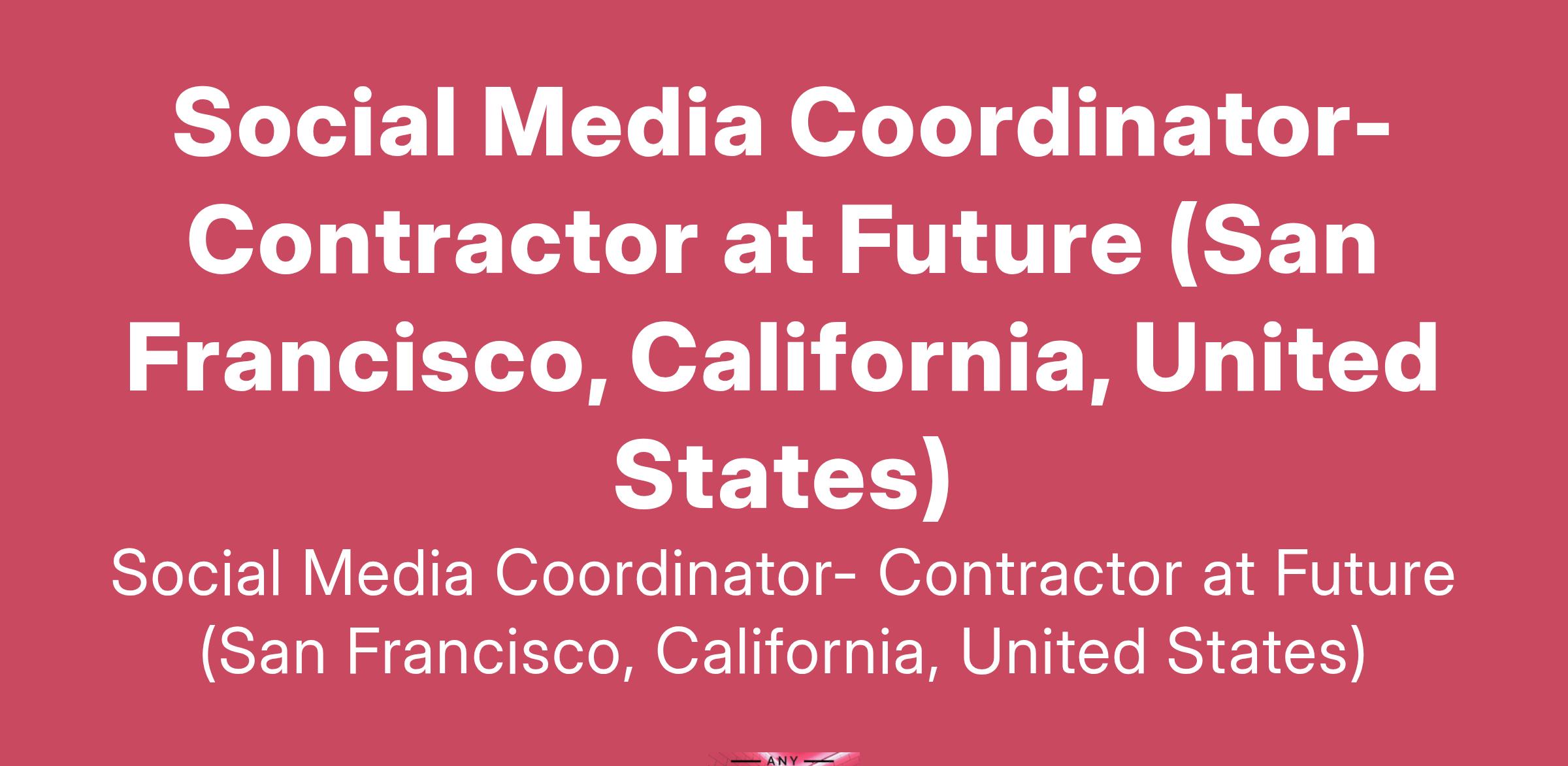Social Media Coordinator- Contractor at Future (San Francisco, California, United States)