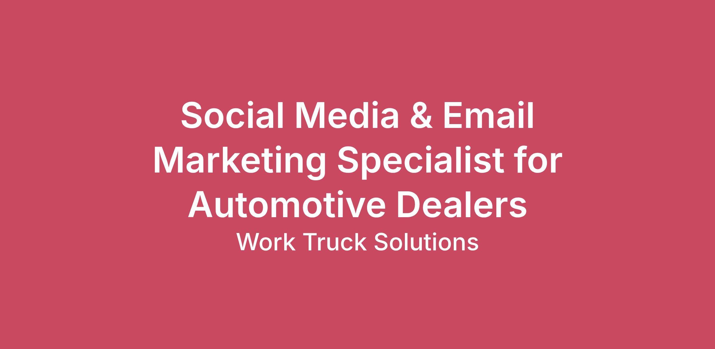POSITION IS FULLY REMOTE, BUT ONLY HIRING IN CA, TX, AND FL.Salary Range: $52,000 - $82000 Work Truck Solutions' culture combines strong leadership, collaboration, and fun, with incredible growth opportunities for our employees in a fast-paced work environment providing employee engagement, recognition, and development. Our software company is committed to innovation in the rapidly changing commercial vehicle market space. Our vision and culture allow employees to be recognized as thought leaders and thrive in their careers.In addition to the job responsibilities and requirements, the following are essential to be a successful member of our team:Curiosity: you seek knowledge, ask questions, and look for answers; you’re proactive and engagedPerseverance: you hit a delay; you know this is your moment to figure things out and to shineInnovation: you want to make things better, solve the puzzle, create something newFlexibility: there’s a new opportunity; you’re ready to flip the script, grow and adaptJob Overview:Work Truck Solutions is seeking a talented and creative Commercial Dealer Marketing Specialist to join our Professional Services team. In this role, you'll be responsible for developing and executing paid social media and email marketing campaigns for our commercial vehicle dealer base. You'll play a key role in ensuring our customers get the best possible return on investment (ROI) from our add-on marketing services.Responsibilities:Successfully onboard dealerships onto Facebook Ads from beginning to end, including, but not limited to, ad account creation, Facebook page linking, audience research, billing, and campaign creation and schedulingSuccessfully onboard dealerships to run Google vehicle listing ads Organize and build well-structured campaigns, ad sets, and ads monthlyDesigning compelling monthly email marketing campaigns for Work Truck Solutions customers and maintain campaigns for multiple resends throughout the monthProactively communicate with customers via email and on the phone/in video meetings to determine needs (i.e., budget, timelines, vehicles/body types to advertise, copy, etc.), understand their target audience and marketing goalsMust be able to both listen to customer needs/concerns and make recommendationsConduct in-depth analysis of social media and email marketing campaign performance using relevant metrics and analytics tools to determine effectiveness, record qualitative and quantitative data of each campaign, and create plans of action for campaign revisionsPerform regular reviews with customers to report results and identify opportunities for improvementIdentify opportunities to improve campaign effectiveness and recommend data-driven strategies for optimizationStay up-to-date on the latest digital marketing trends and best practicesQualifications:Experience in paid social media marketing and/or email marketing is requiredExperience either working at or directly with automotive dealerships is strongly preferredProven ability to create engaging and effective social media content (text, images, videos)Experience with email marketing platforms (e.g. ActiveCampaign, Mailchimp, Iterable, etc.) and Salesforce is desired.Strong analytical skills with the ability to interpret and apply data insightsExcellent communication and writing skillsThis is a customer-facing position that requires the ability to communicate effectively and professionally in online meetings.Benefits:Work on meaningful projects that shape the future of the commercial vehicle industry.Competitive salary.Fully remote Monday-Friday work week.Comprehensive medical, dental, and 401k benefits, with complimentary life insurance.Paid Time Off (PTO) and holidays.Flexible scheduling, subject to manager’s approval.Opportunity to work with a supportive and innovative team.
