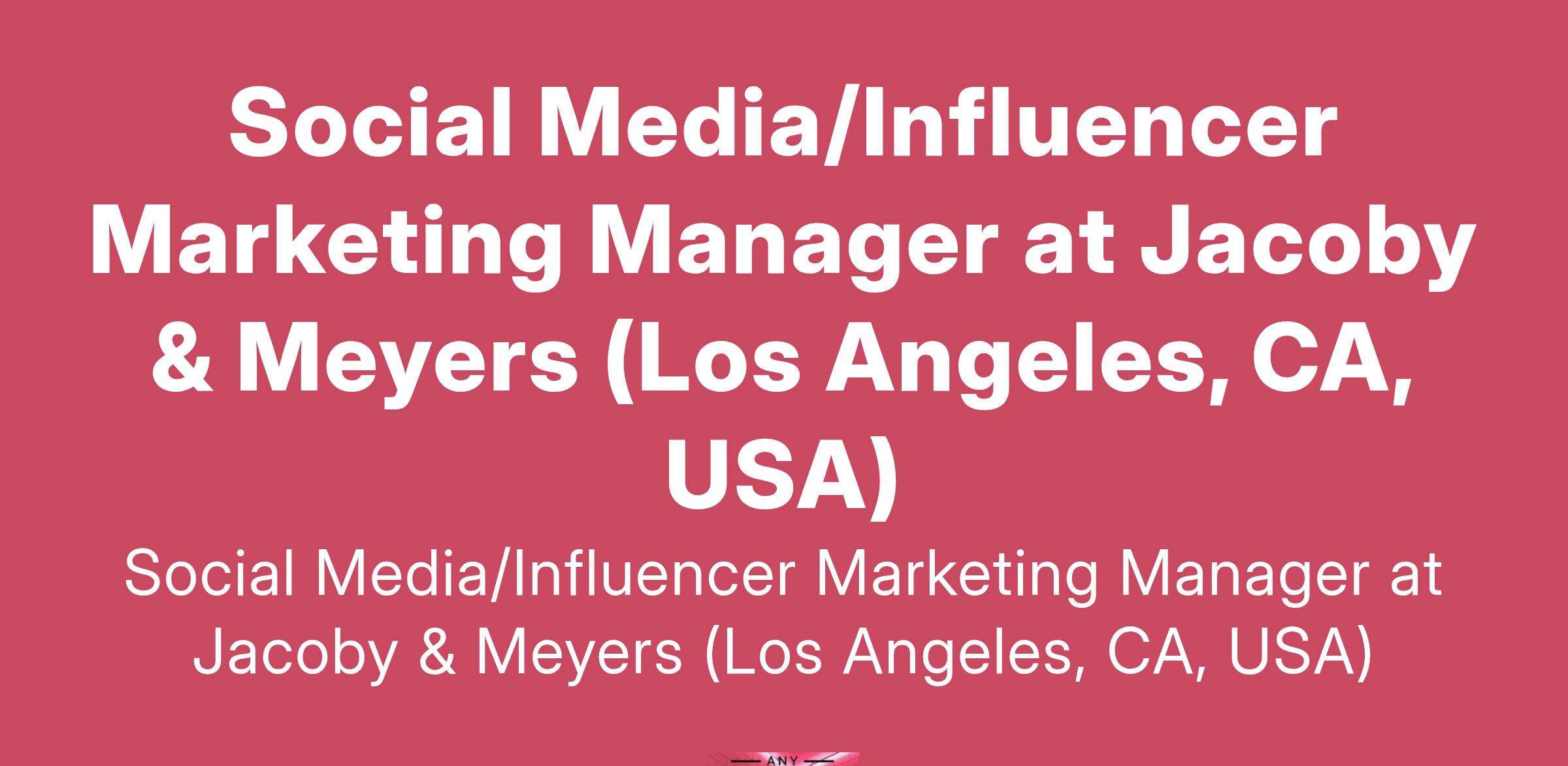 Social Media/Influencer Marketing Manager at Jacoby & Meyers (Los Angeles, CA, USA)