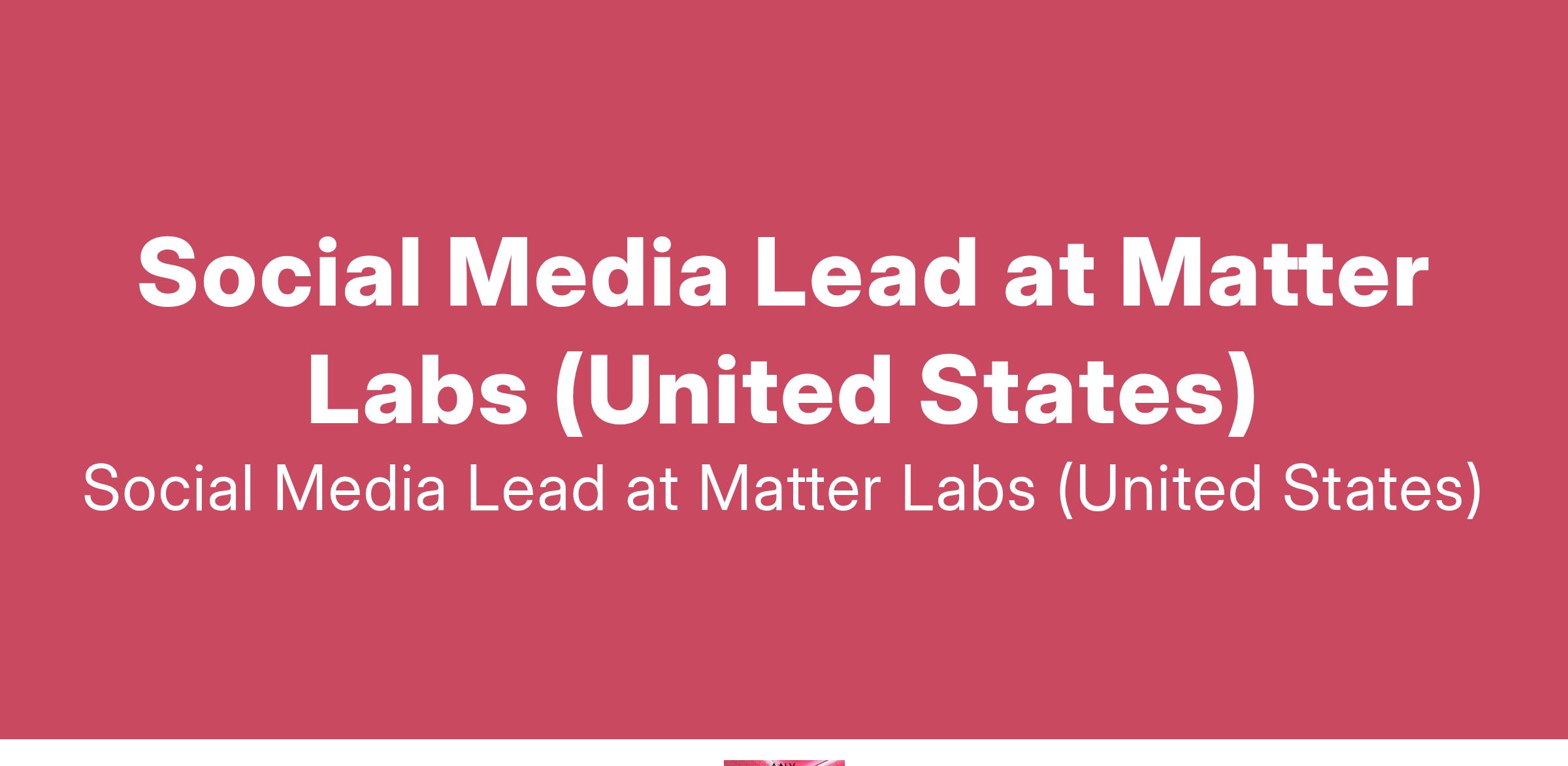 Social Media Lead at Matter Labs (United States)