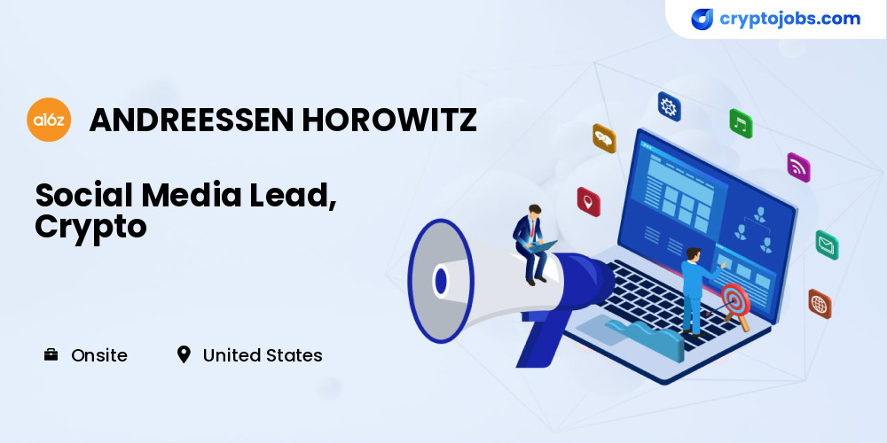 - Develop community and voice. You’re able to regularly engage with relevant social media communities and different audiences — as well as identify and engage key influencers across various crypto verticals/ domains. You would also be the online brand voice (and advocate for the industry) on behalf of a16z crypto.