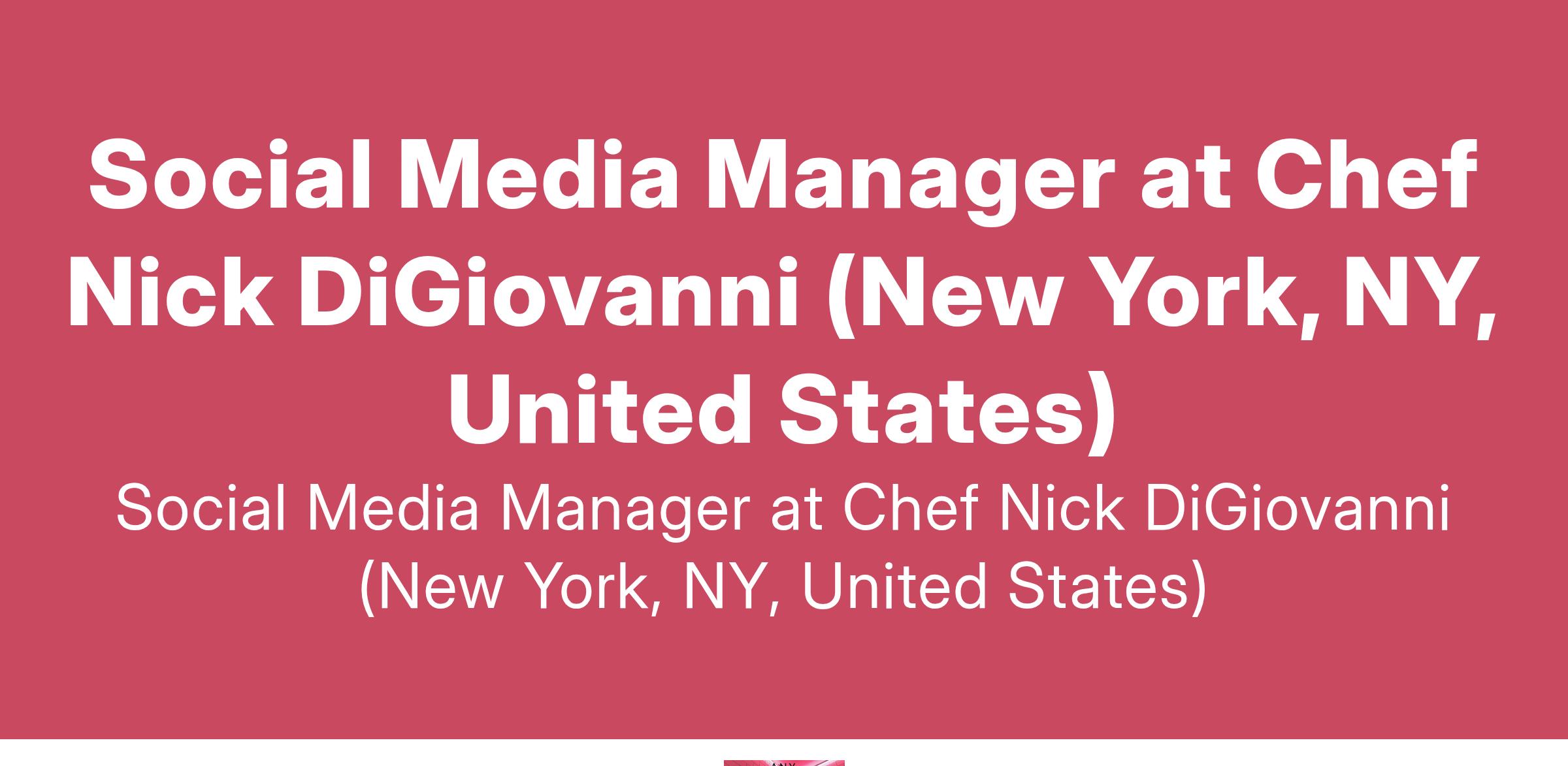Social Media Manager at Chef Nick DiGiovanni (New York, NY, United States)