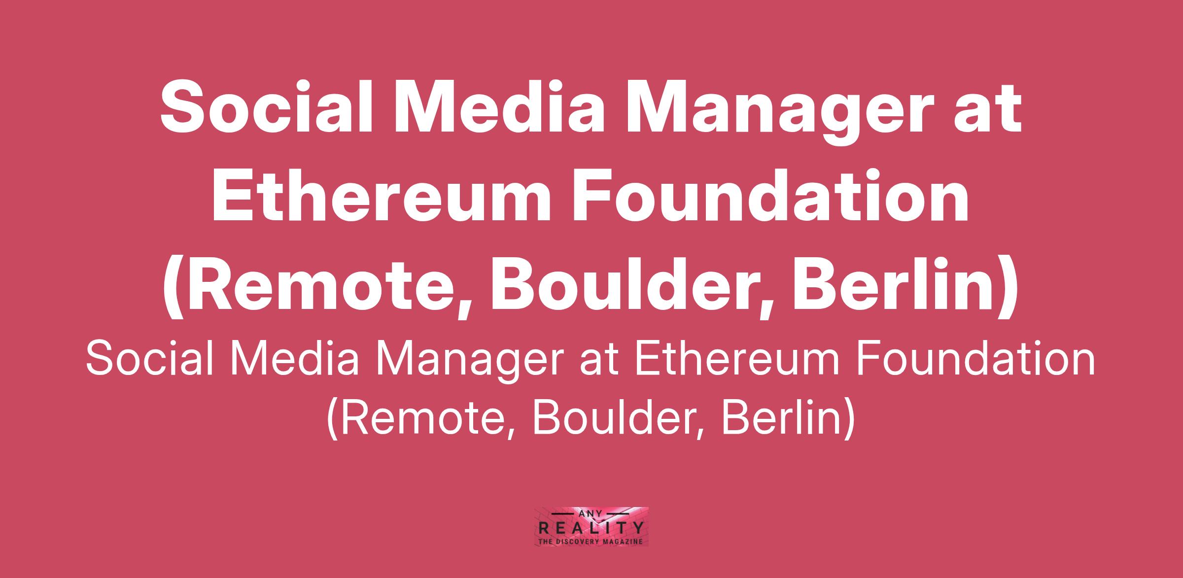 Social Media Manager at Ethereum Foundation (Remote, Boulder, Berlin)