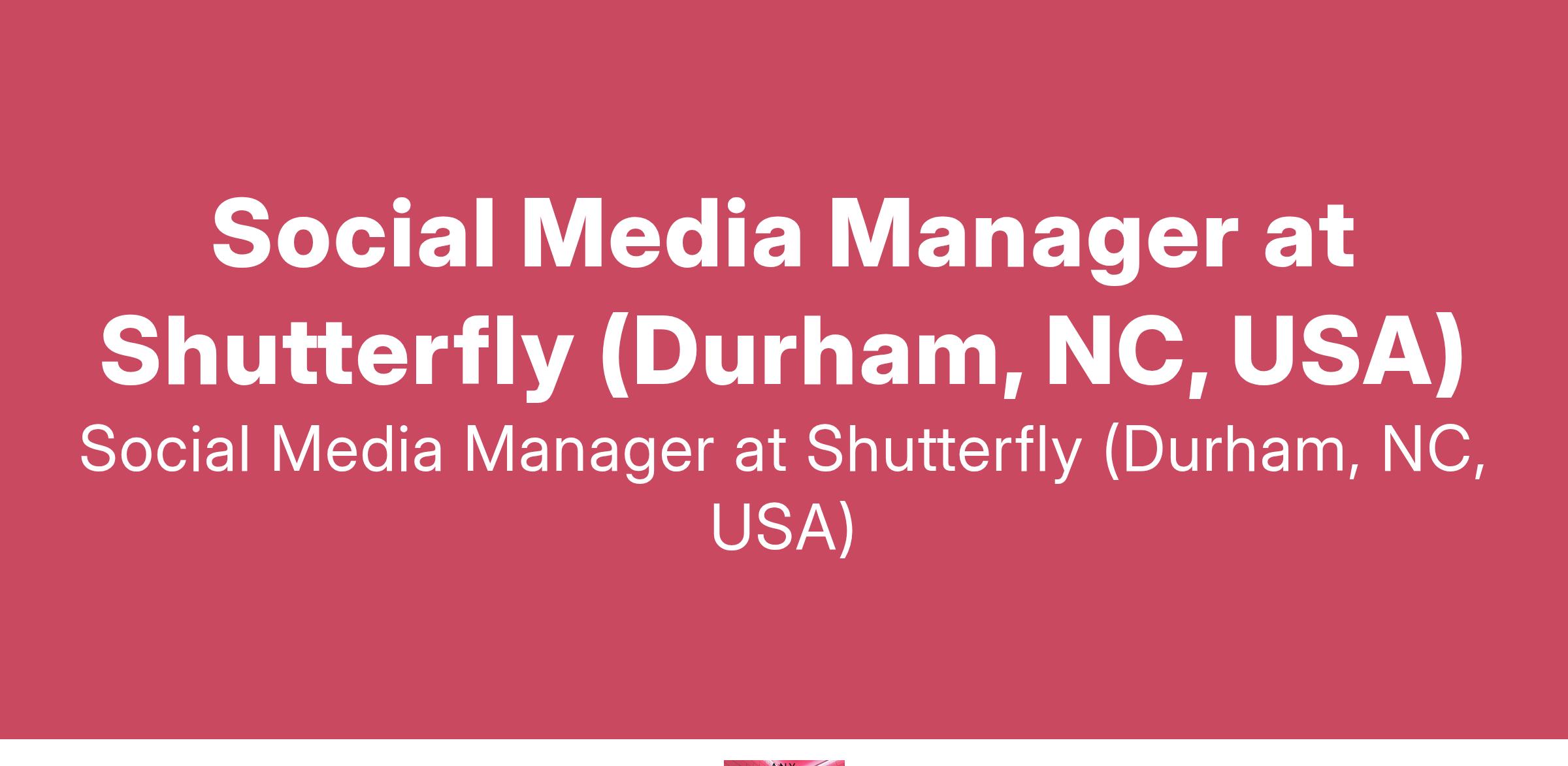 Social Media Manager at Shutterfly (Durham, NC, USA)
