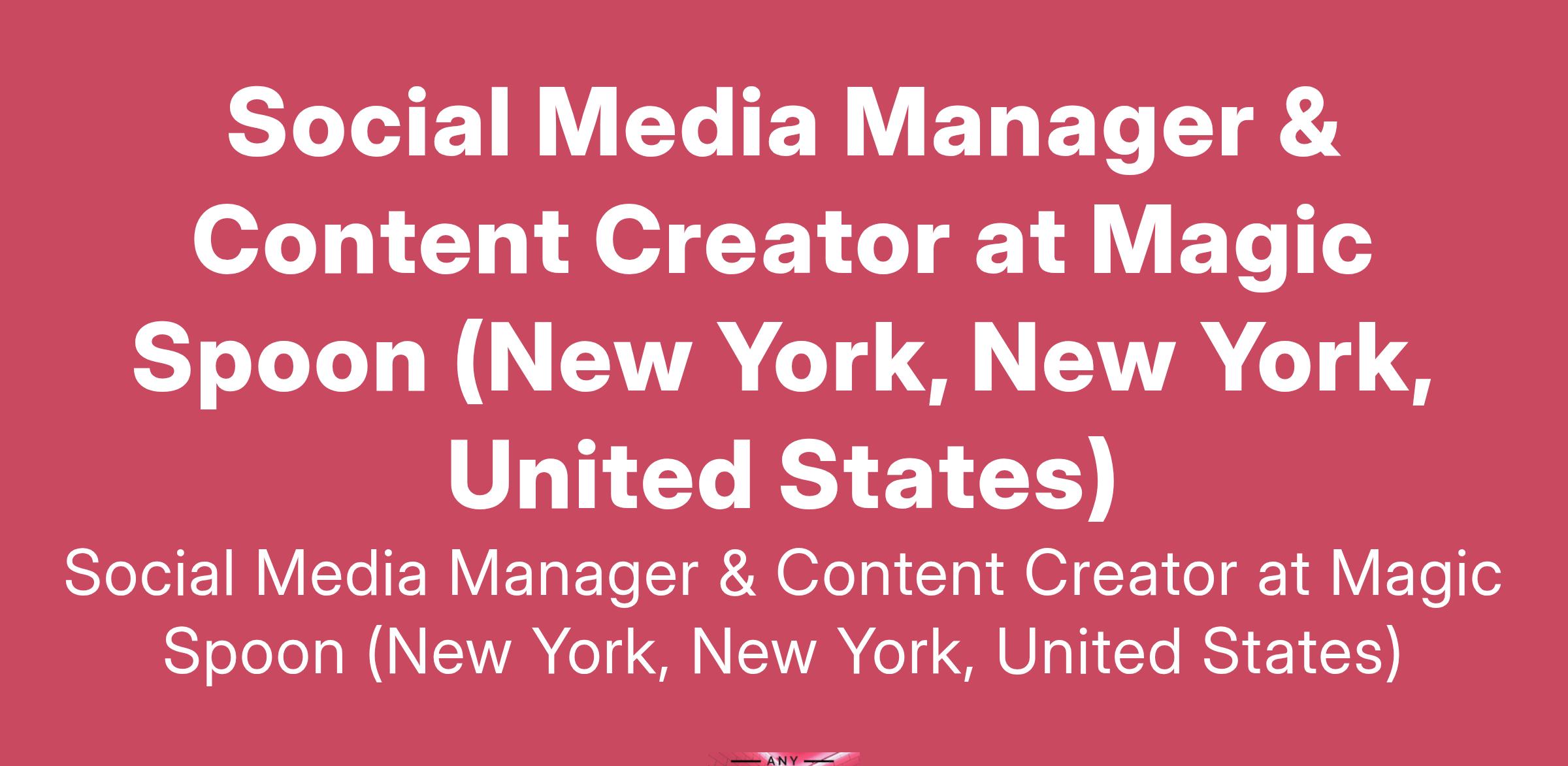 Social Media Manager & Content Creator at Magic Spoon (New York, New York, United States)