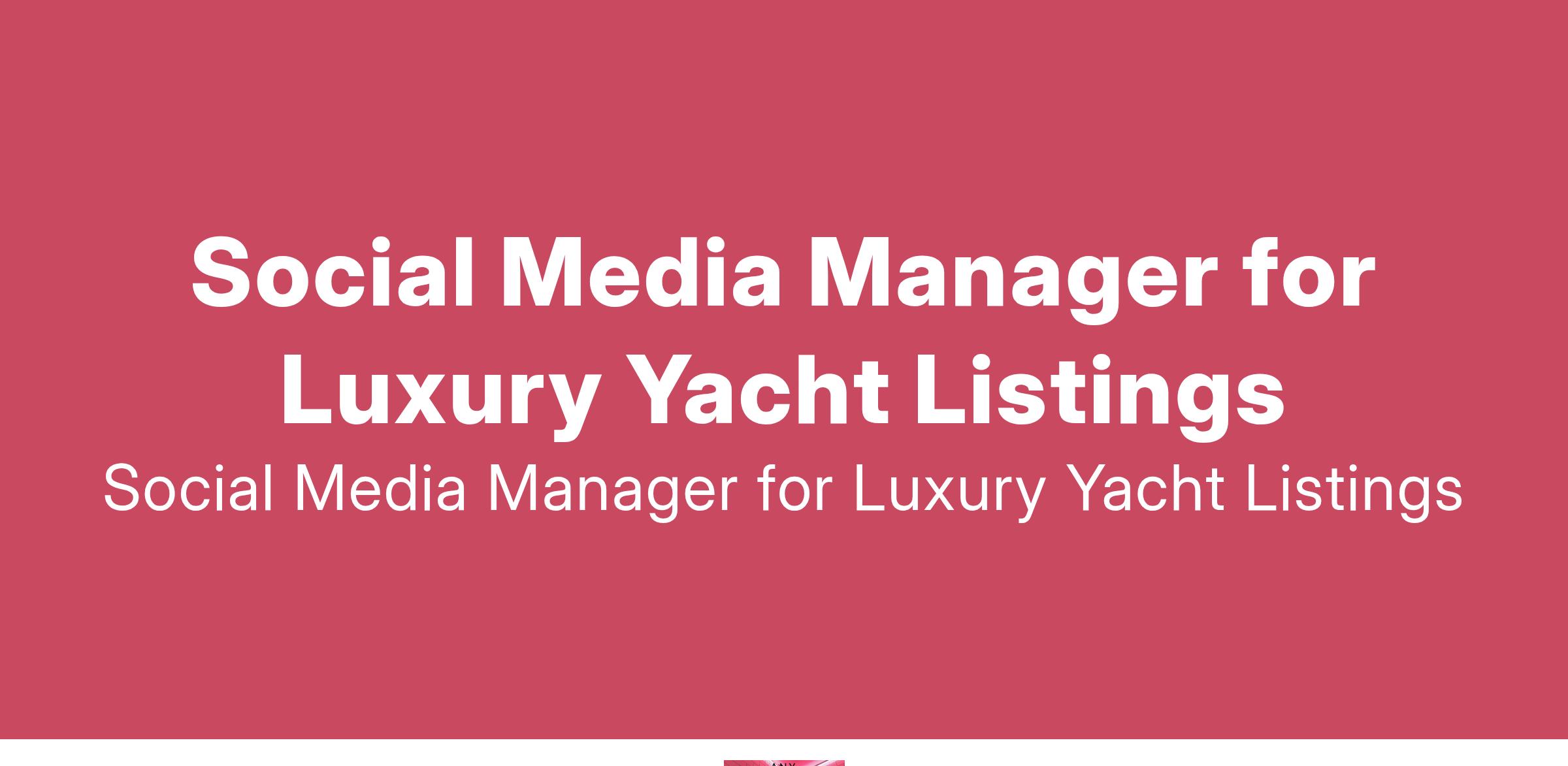 I run a marine yacht sales company and I'm looking for a competent and creative social media manager who can edit and produce videos for our high-end yacht listings on Instagram, Facebook, YouTube and our company website... (Budget: $15 - $25 USD, Jobs: Facebook Marketing, Google Plus, Pinterest, Social Media Marketing, Twitter)