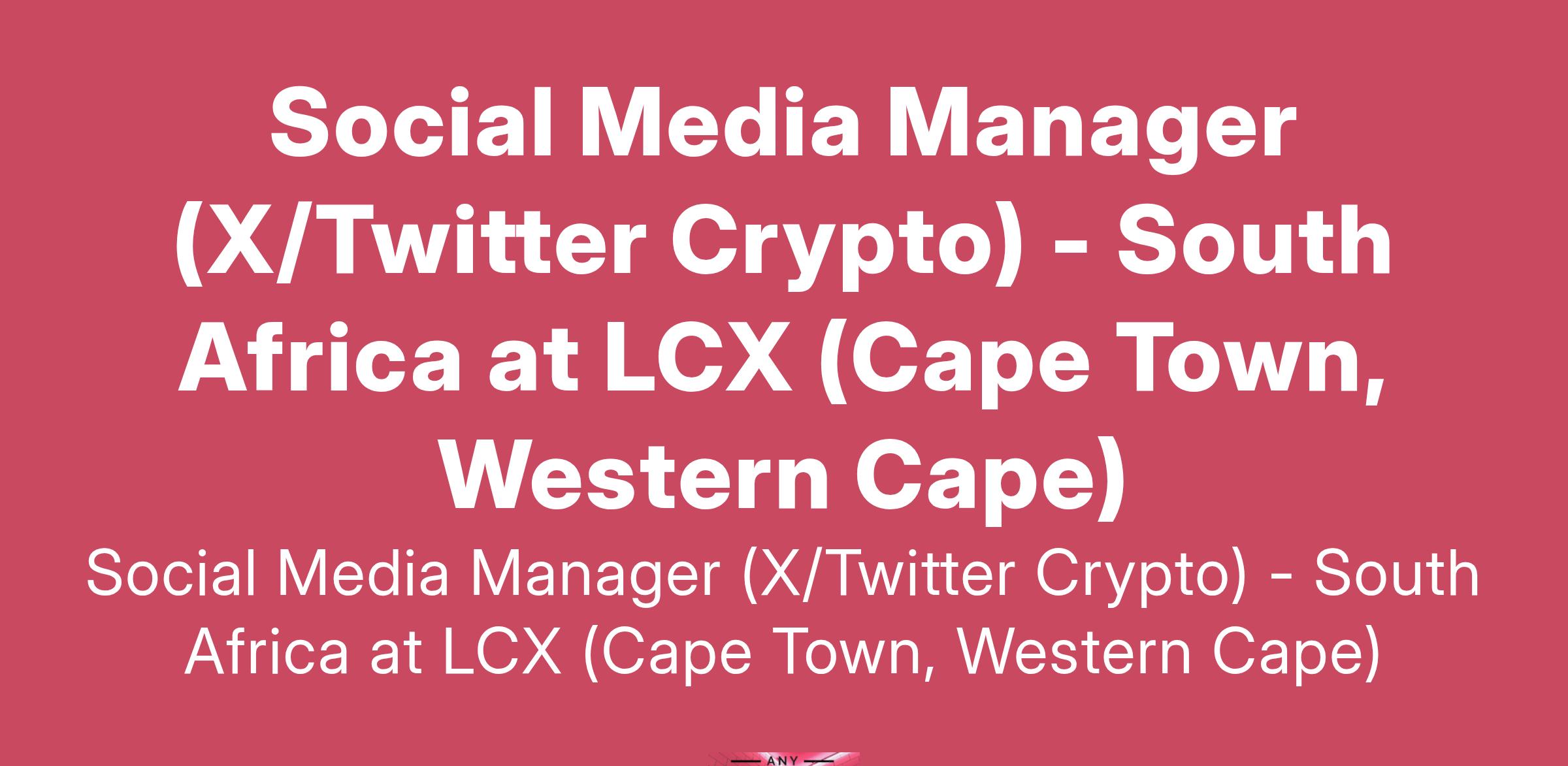 Social Media Manager (X/Twitter Crypto) - South Africa at LCX (Cape Town, Western Cape)