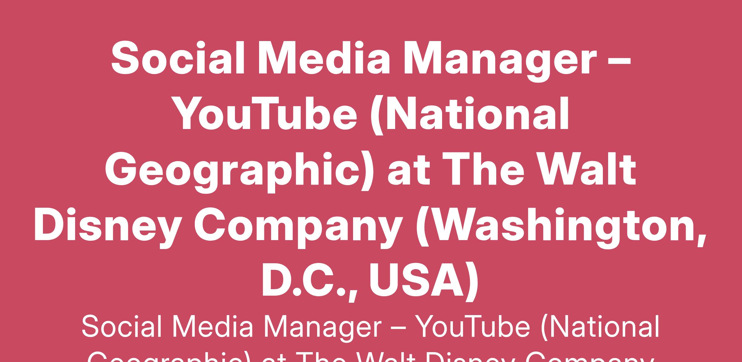 Social Media Manager – YouTube (National Geographic) at The Walt Disney Company (Washington, D.C., USA)