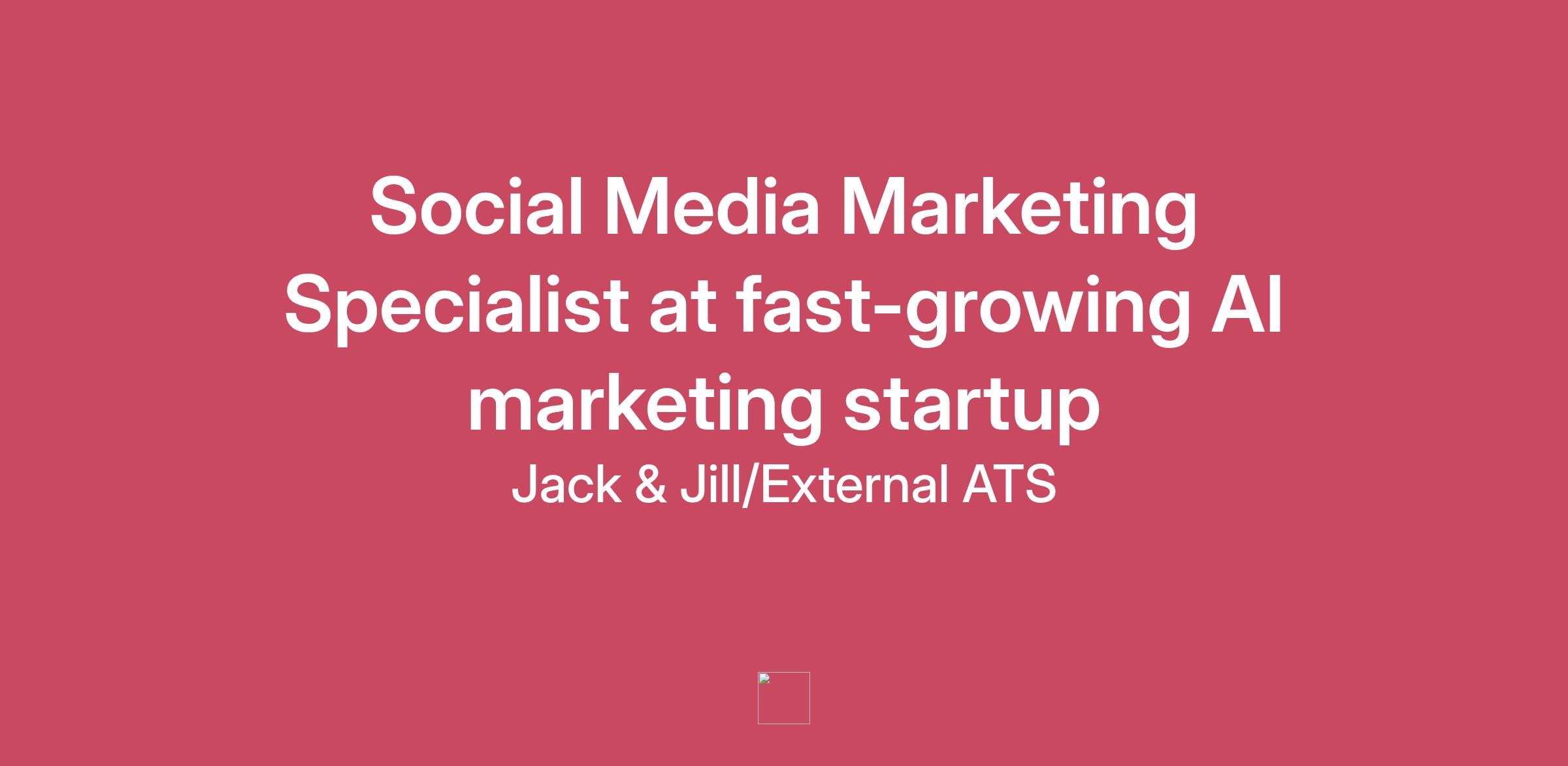 This is a job that Jill, our AI Recruiter, is recruiting for on behalf of one of our customers.She will pick the best candidates from Jack's network.The next step is to speak to Jack.Social Media Marketing SpecialistCompany Description: Fast-growing AI marketing startupJob Description:You will lead the social media strategy for an innovative AI platform, driving engagement and building a vibrant community across multiple channels. This role focuses on translating complex AI capabilities into compelling visual and written content, managing daily interactions, and analyzing performance metrics to scale our brand presence globally in a high-growth environment.Location: RemoteWhy this role is remarkable:Shape the digital voice of a disruptive AI startup from the ground up.Backed by top-tier VCs in the artificial intelligence and marketing tech space.High-autonomy environment with the opportunity to pioneer new social media growth experiments.What you will do:Create and execute a comprehensive social media content calendar across LinkedIn, X, and Instagram.Engage with the tech community and industry influencers to increase brand visibility and trust.Monitor analytics and social trends to optimize campaign performance and drive user acquisition.The ideal candidate:Proven experience managing social media for a high-growth B2B SaaS or tech company.Exceptional storytelling skills with the ability to simplify technical AI concepts for a broad audience.Proficiency in creative tools and data analytics platforms to measure and report on social ROI.Who are Jack & Jill?Ok, I'll go first. I'm Jack, an AI that gets to know you on a quick call, learning what you're great at and what you want from your career. Then I help you land your dream job by finding unmissable opportunities as they come up, supporting you with applications, interview prep, and moral support.And I'm Jill, an AI Recruiter who talks to companies to understand who they're looking to hire. Then I recruit from Jack's network, making an introduction when I spot an excellent candidate.Next stepsStep 1. Visit our website.Step 2. Click 'Talk to Jack'.Step 3. Talk to Jack so he can understand your experience and ambitions.Step 4. Jack will make sure Jill (the AI agent working for the company) considers you for this role.Step 5. If Jill thinks you're a great fit and her client wants to meet you, they will make the introduction.Step 6. If not, Jack will find you excellent alternatives. All for free.We never post fake jobsThis isn't a trick. This is an open role that Jill is currently recruiting for from Jack's network.Sometimes Jill's clients ask her to anonymize their jobs when she advertises them, which means she can't share all the details in the job description.We appreciate this can make them look a bit suspect, but there isn't much we can do about it.Give Jack a spin! You could land this role. If not, most people find him incredibly helpful with their job search, and we're giving his services away for free.