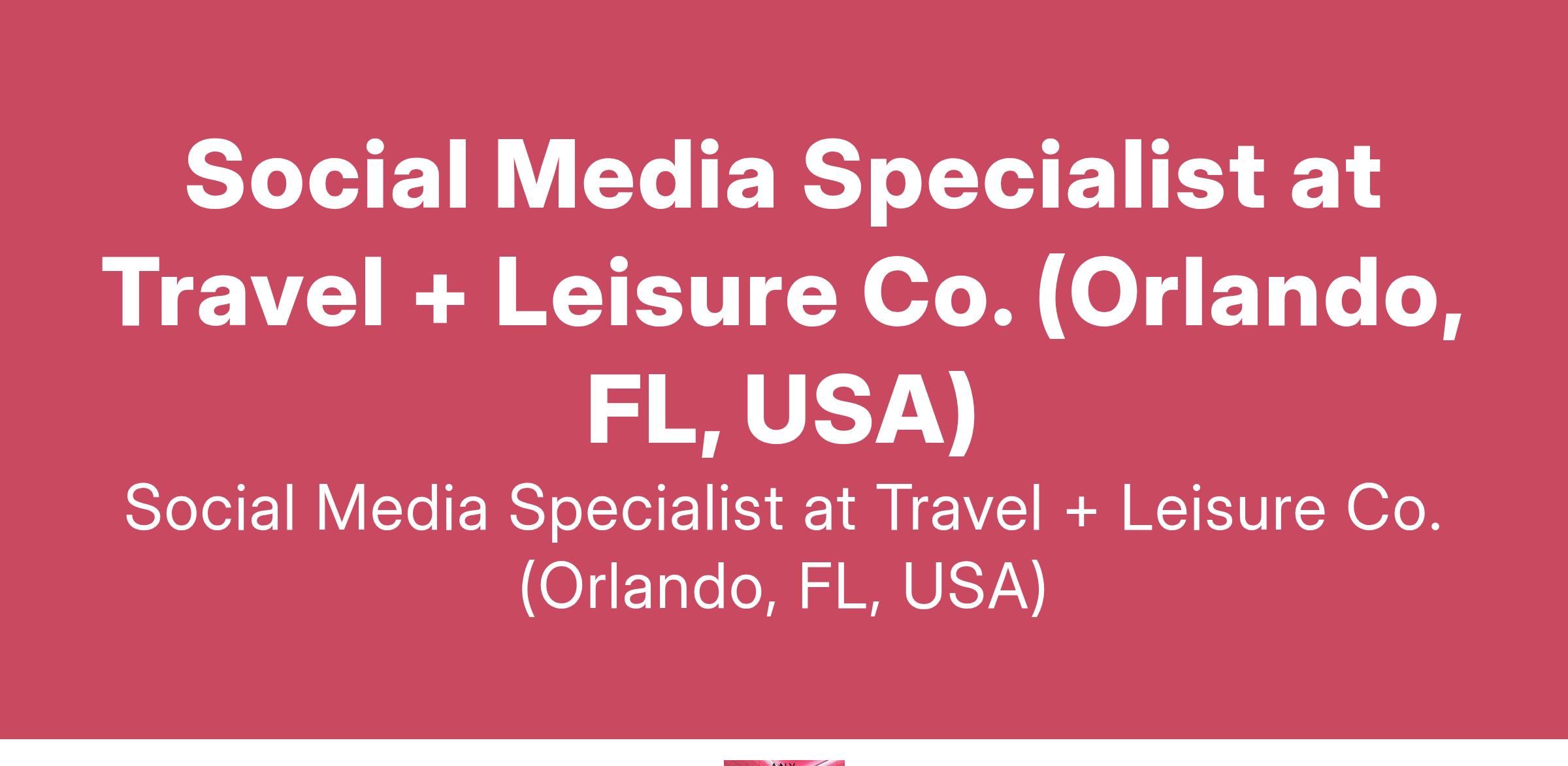 Social Media Specialist at Travel + Leisure Co. (Orlando, FL, USA)