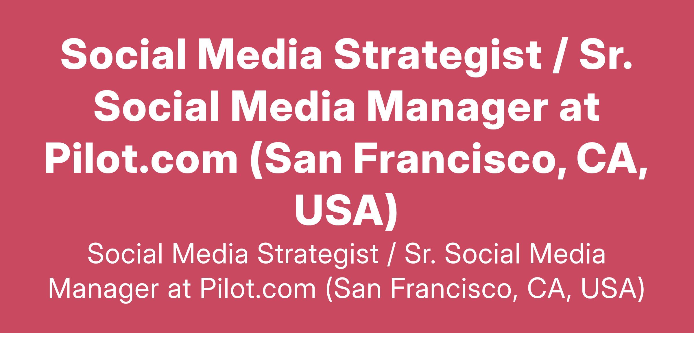 Social Media Strategist / Sr. Social Media Manager at Pilot.com (San Francisco, CA, USA)