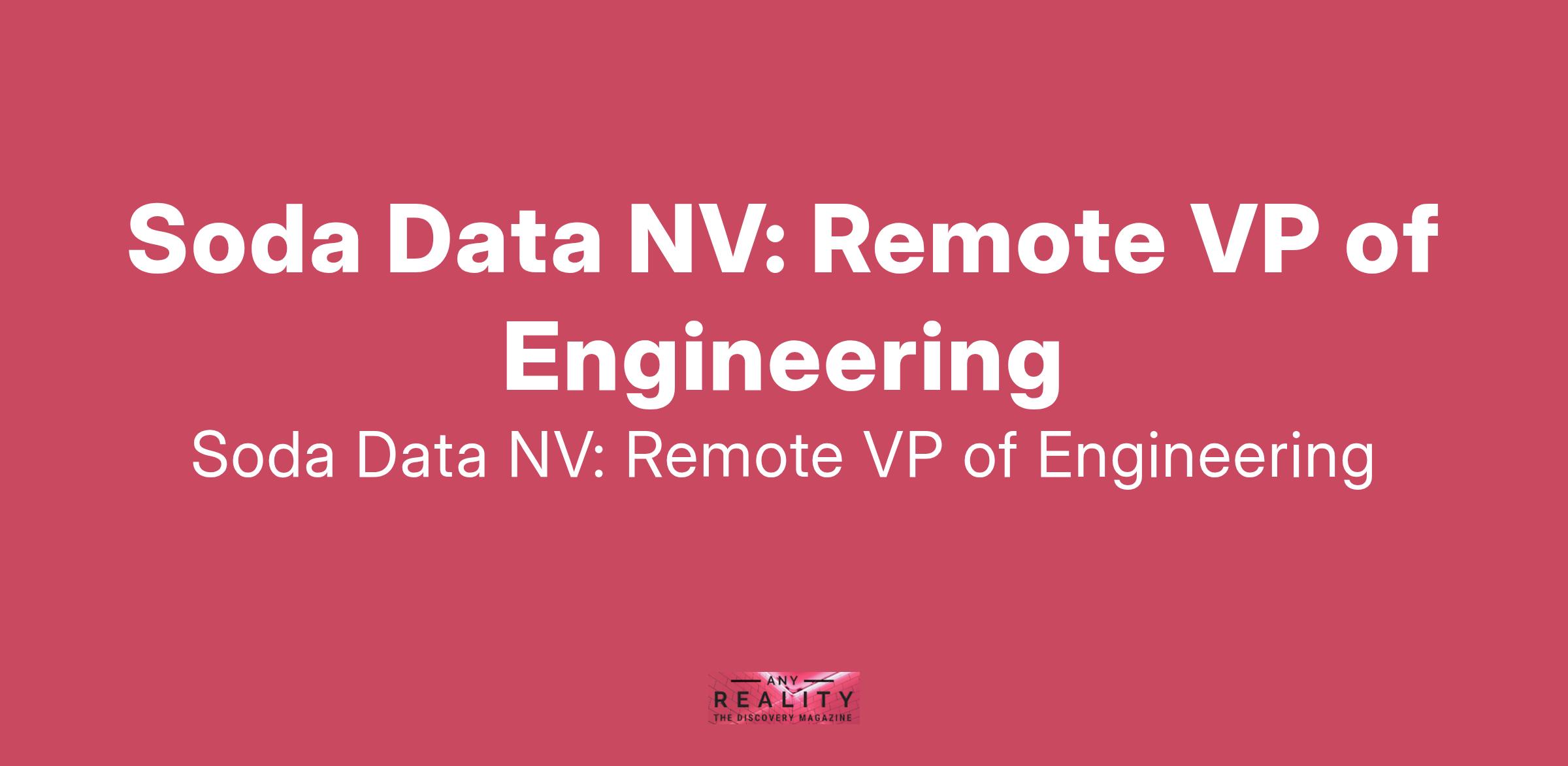 Soda is looking for a proven VP of Engineering to strengthen our leadership team. You will work alongside our leadership team and report directly to the CPO, working closely the product team to accelerate the delivery of the upcoming product features across Data Observability and Data Testing.